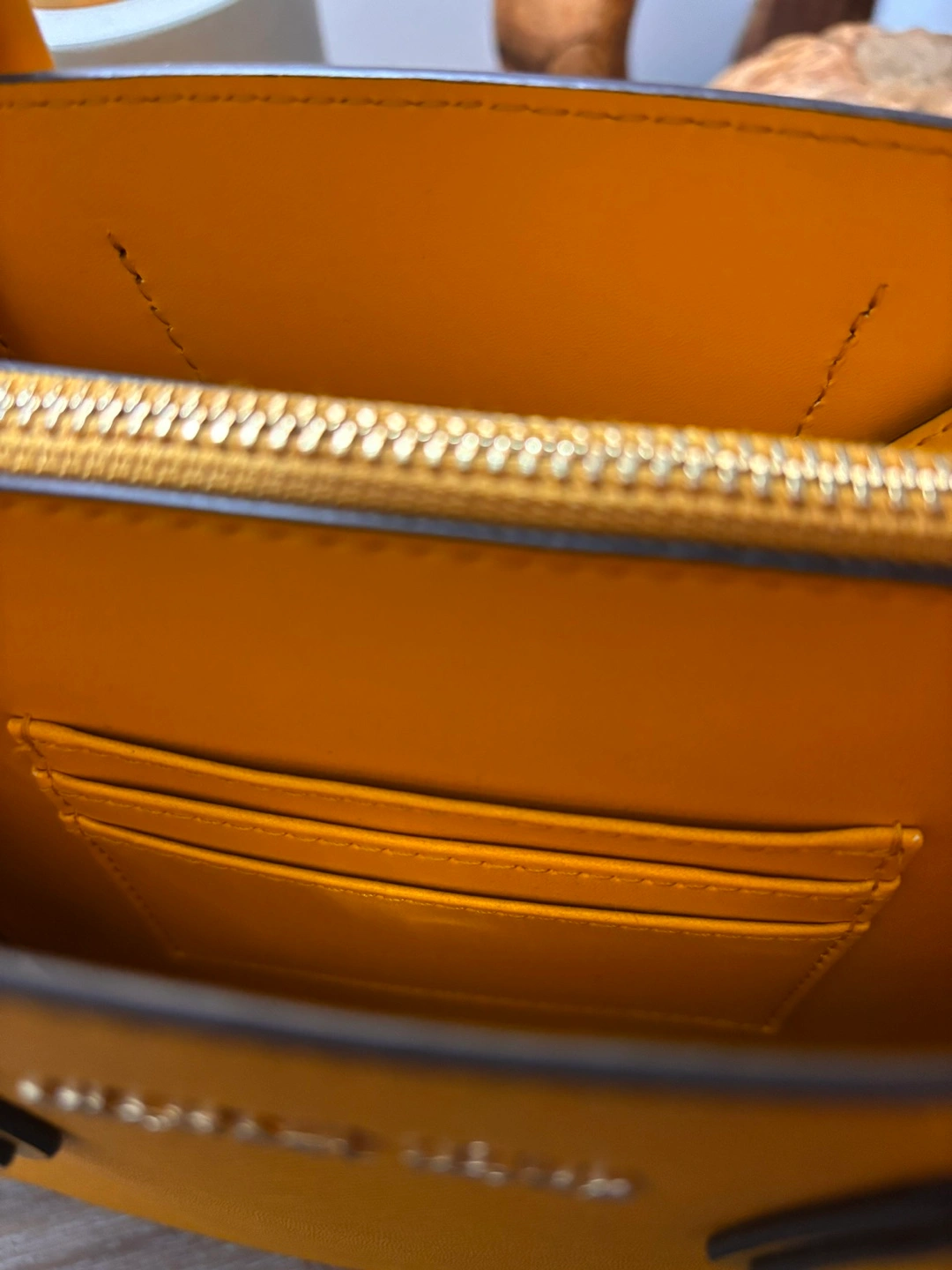 • Interior details: 2 open compartments, center zip compartment, 3 card pockets