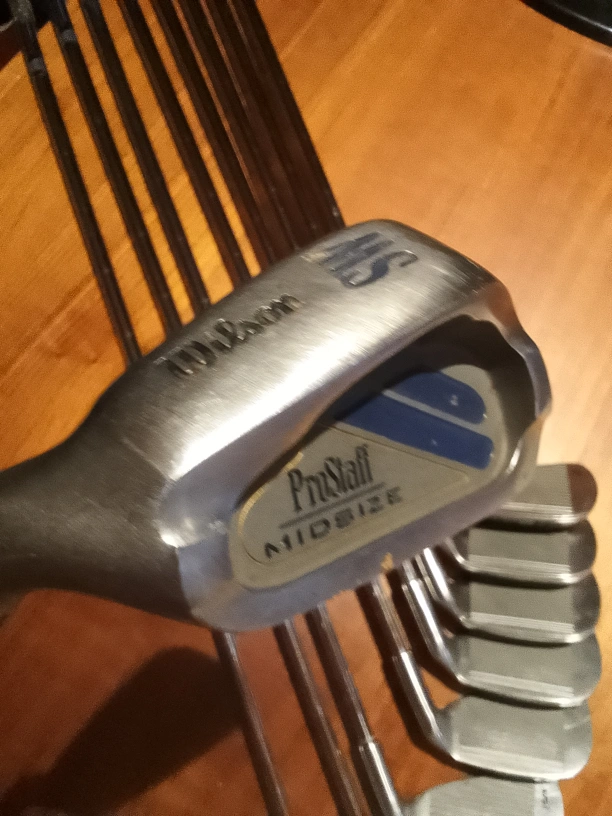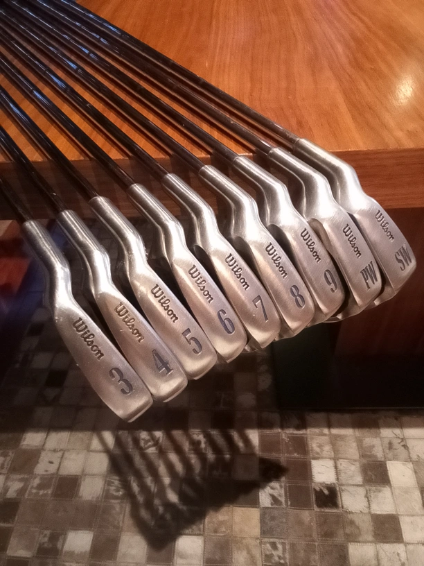 Selling a set of Wilson ProStaff golf irons. The set includes irons 3 through 9, plus pitching wedge (PW) and sand wedge (SW). The grips are in excellent condition.