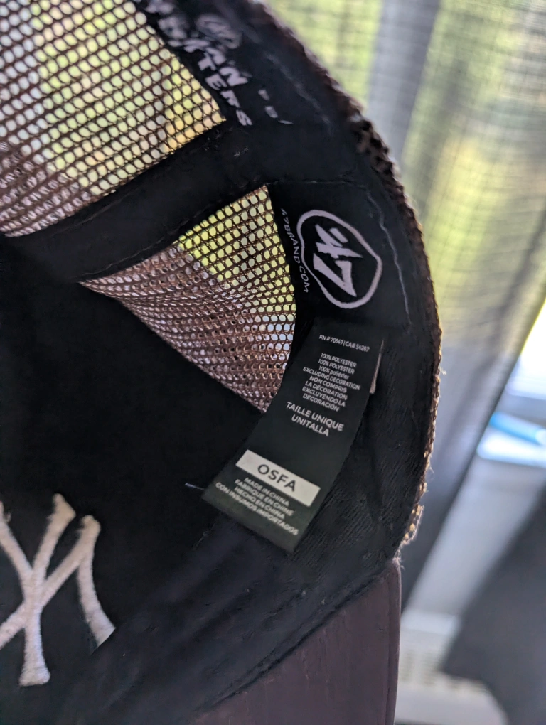 Selling a New York Yankees hat from '47 Brand! It's in great condition and is one size fits all (OSFA). The hat is made of 100% polyester, exclusive of decoration.