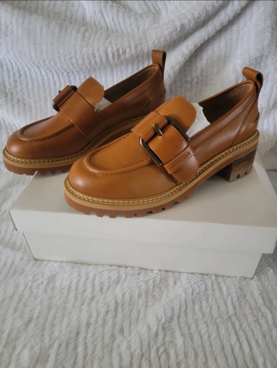 NEW See by Chlo茅 Tan Wilow Heeled Leather Loafers