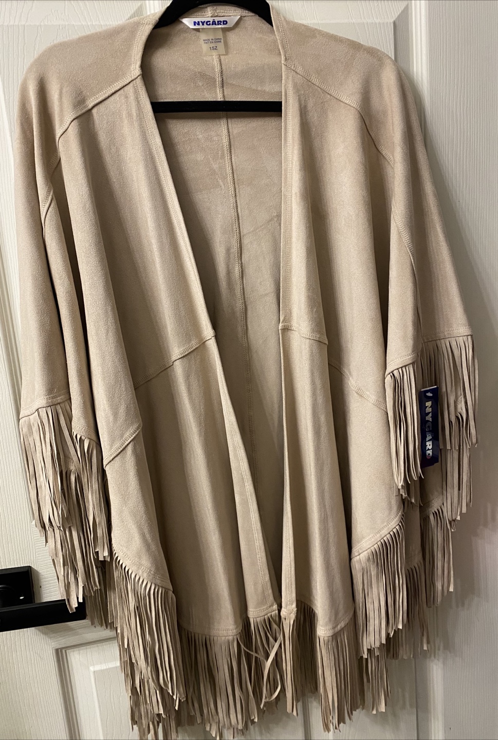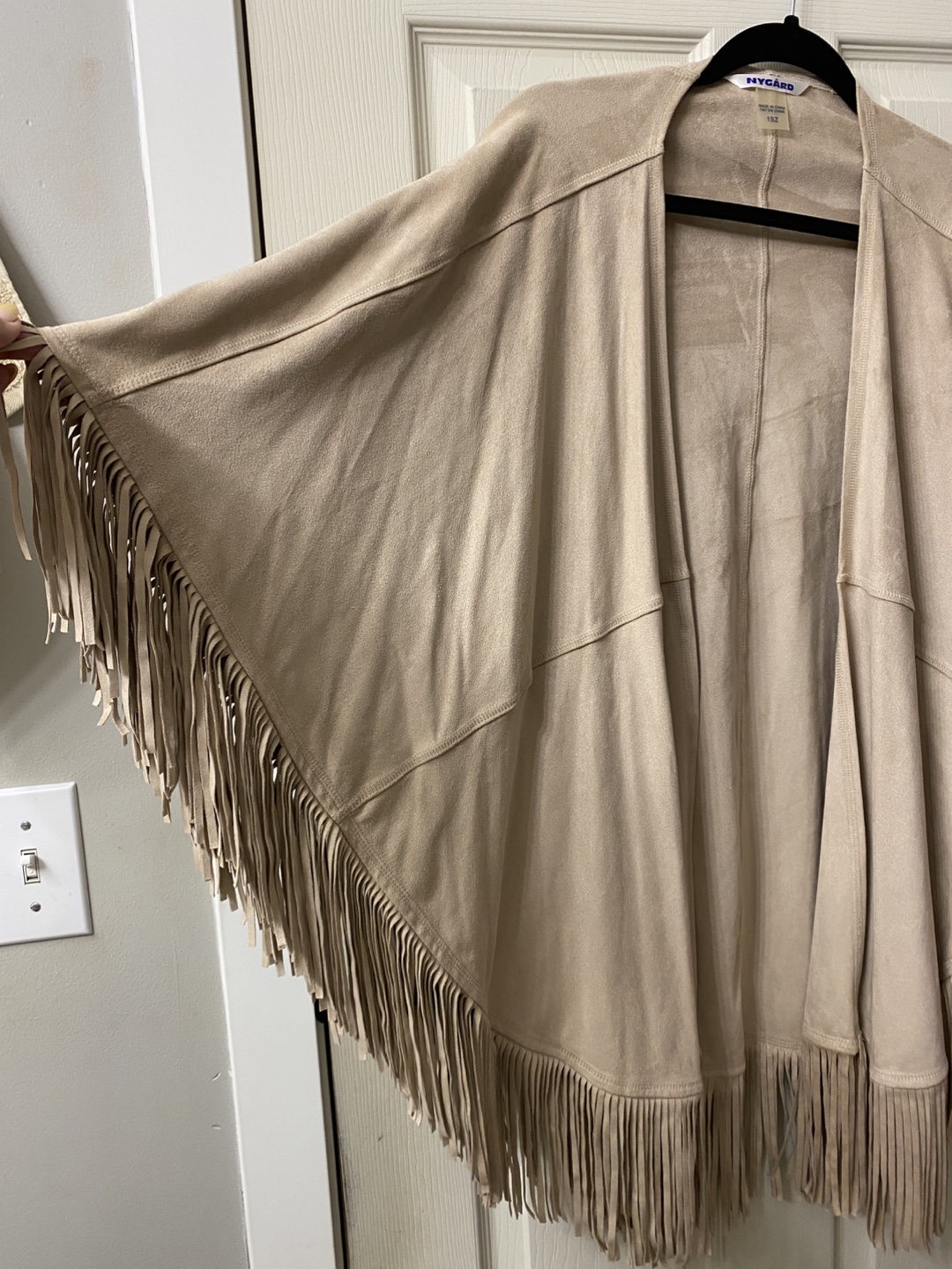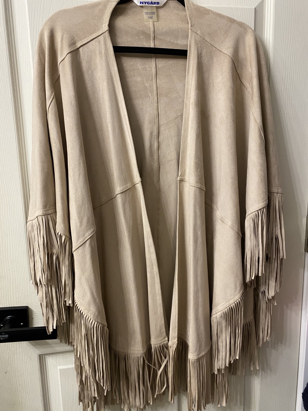 Selling a Nygard poncho, suede like, with a fun fringe detail! It's a beautiful ivory colour and a one-size-fits-all. It was originally bought for $129.00. New, never used it, great for Stampede! Pick up in Chestermere.
