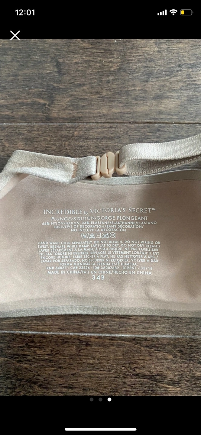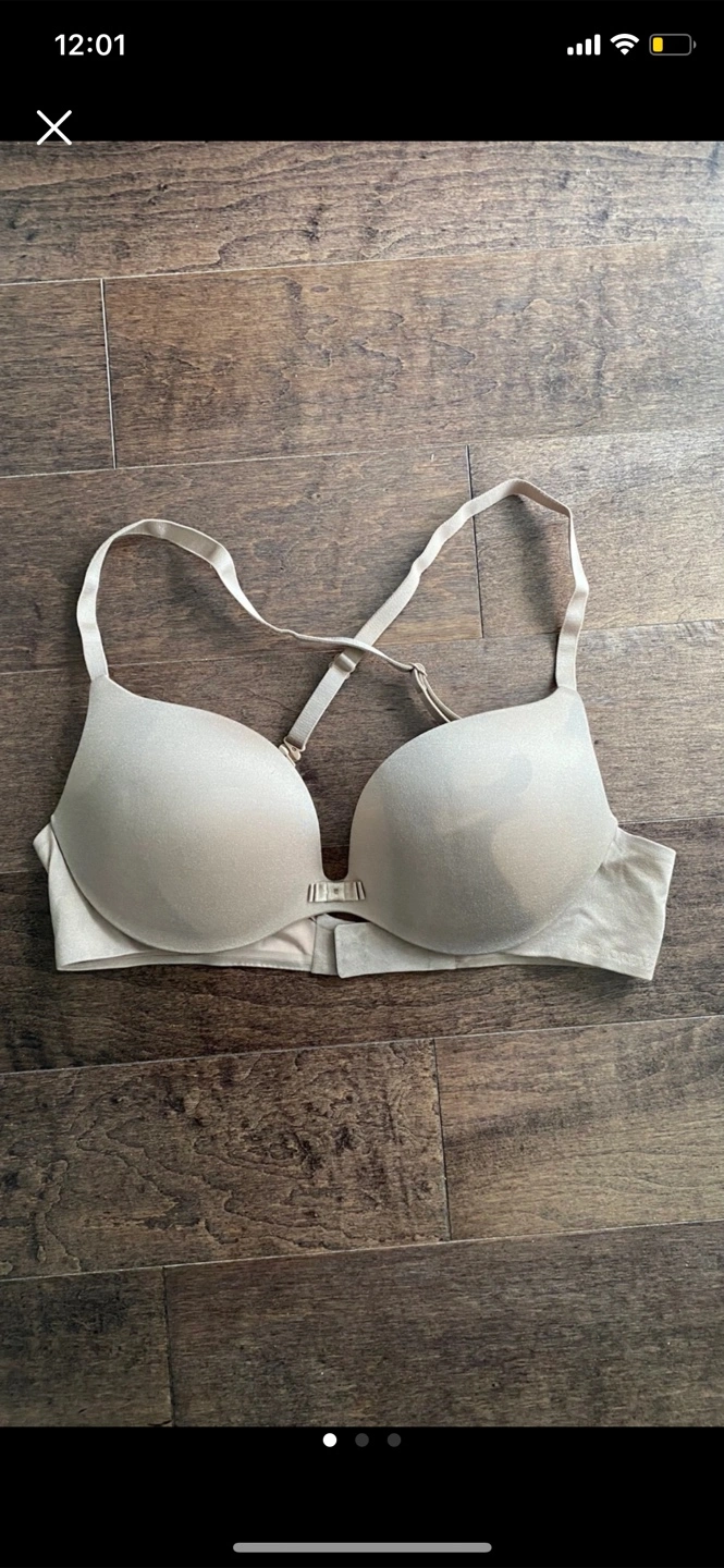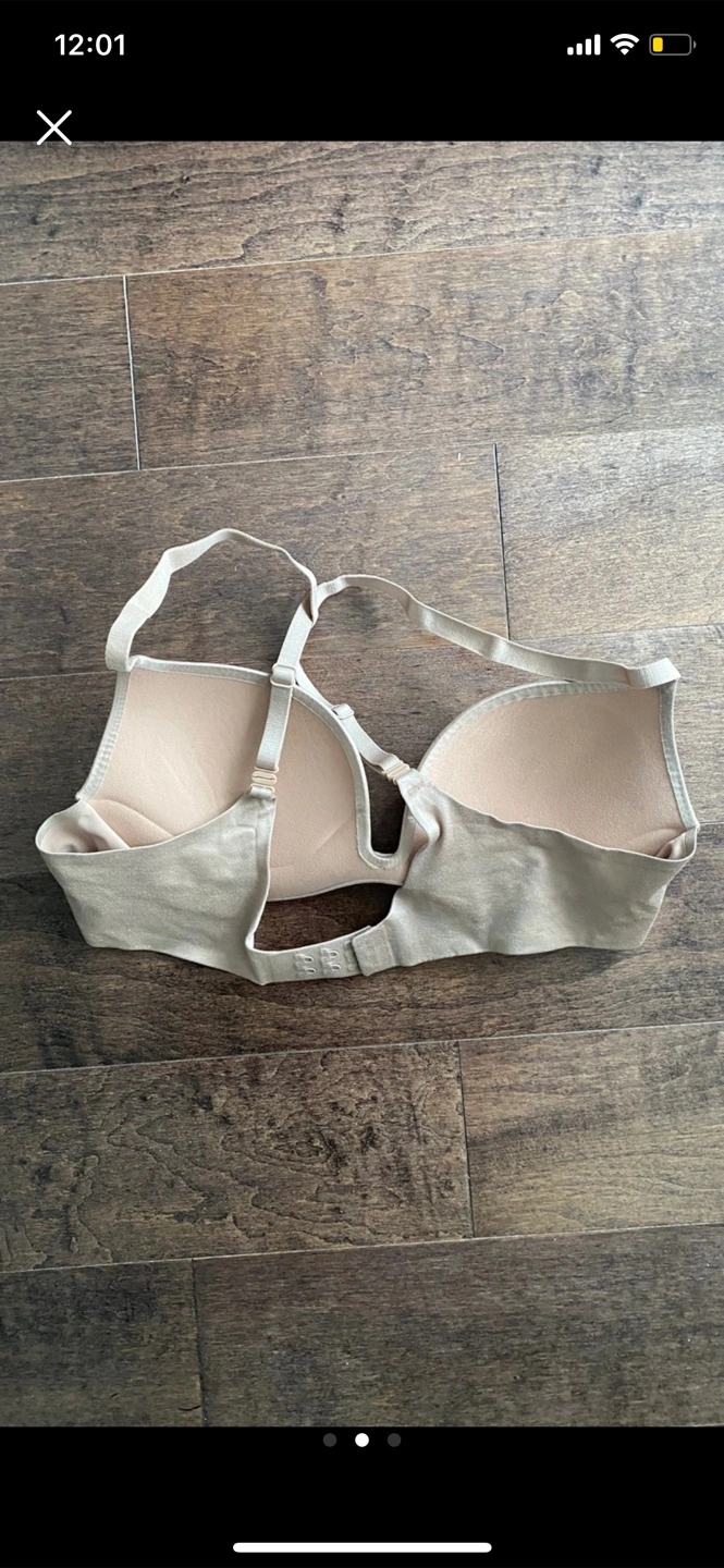 Beige bra with a plunging neckline and a criss-cross back. 34B size.