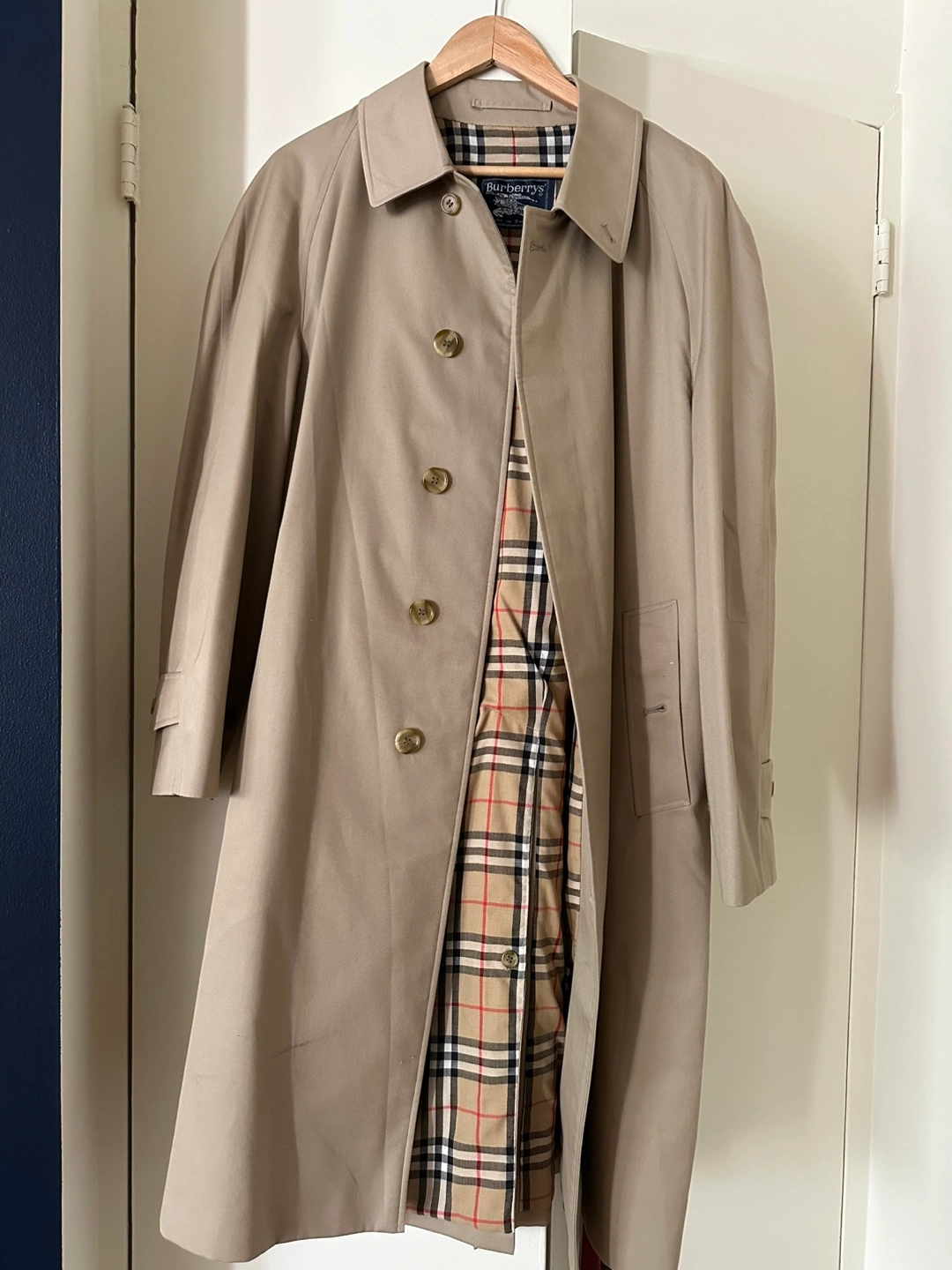 Classic Burberry trench coat! 100% absolutely authentic, when their logo was Burberry’s. It's in great condition and features the iconic Burberry check lining. Unisex. Size large, perfect for classy oversized fit. I’d keep it but my closet is too full.