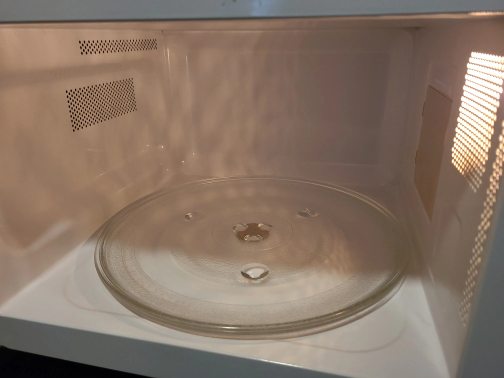 - Large LED digital display, easy-to-read control panel, child safety lock, interior light, removable glass turntable