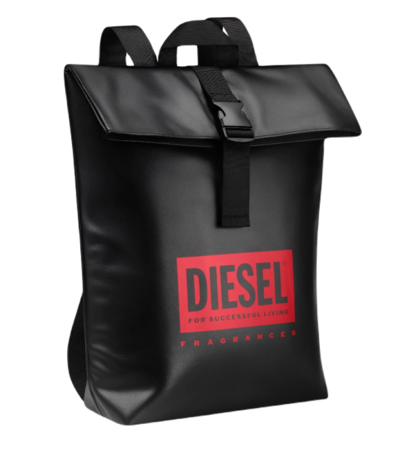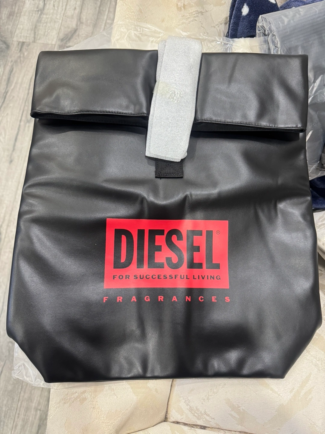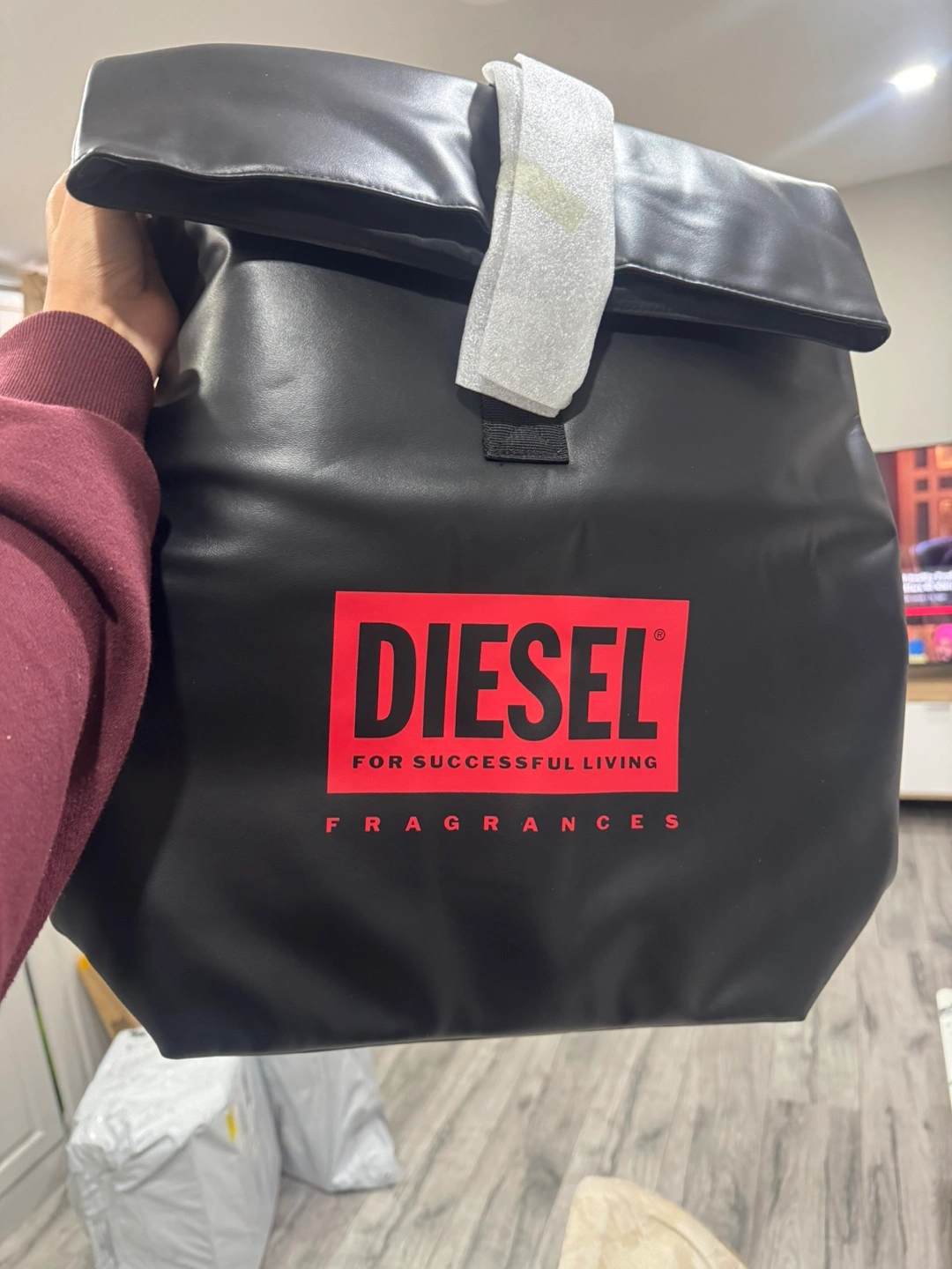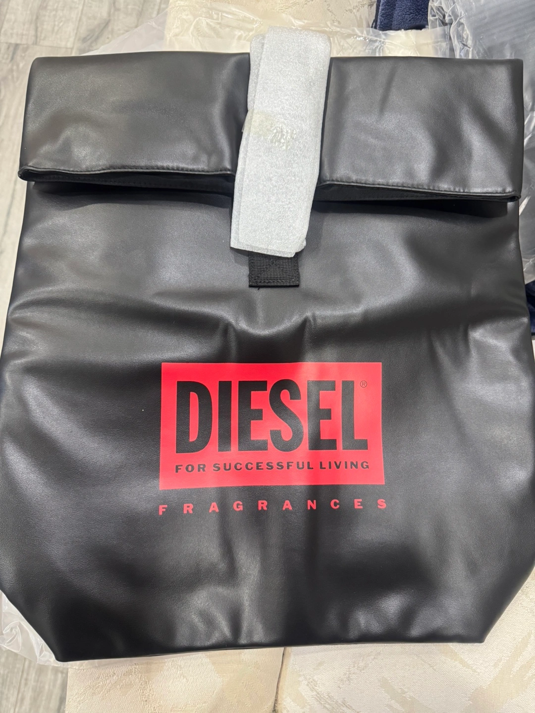 This is a brand new Diesel Fragrances backpack! It's black and features the Diesel logo in red. Perfect for carrying your essentials in style.