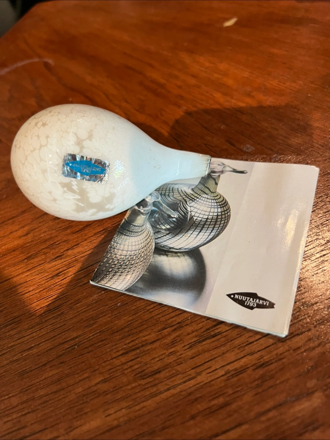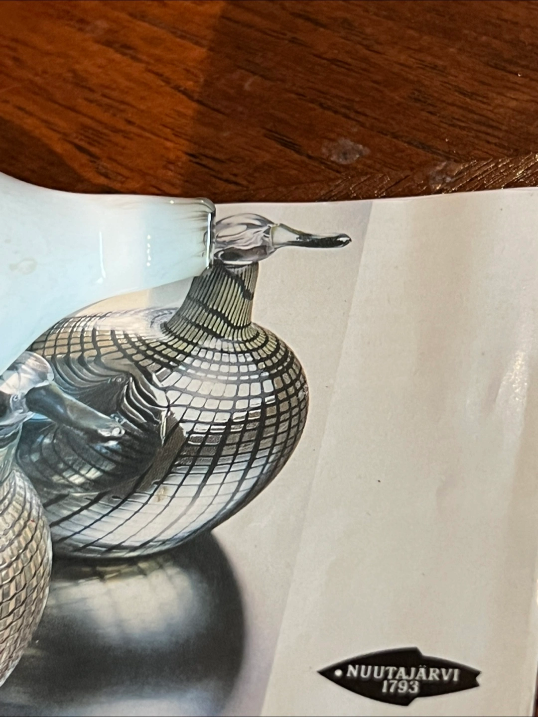 Selling a beautiful Nuutajarvi glass bird figurine. It's a lovely piece to add to any collection or as a decorative item in your home. The figurine is in perfect condition and comes with its original booklet.