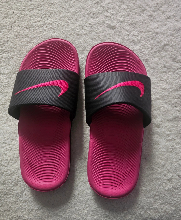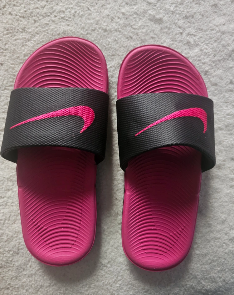 Nike Kawa Slides in pink and black. These are girls' slides, perfect for everyday wear. They're in great condition and ready for a new home! Originally bought for $30 +tax. Comfortable.