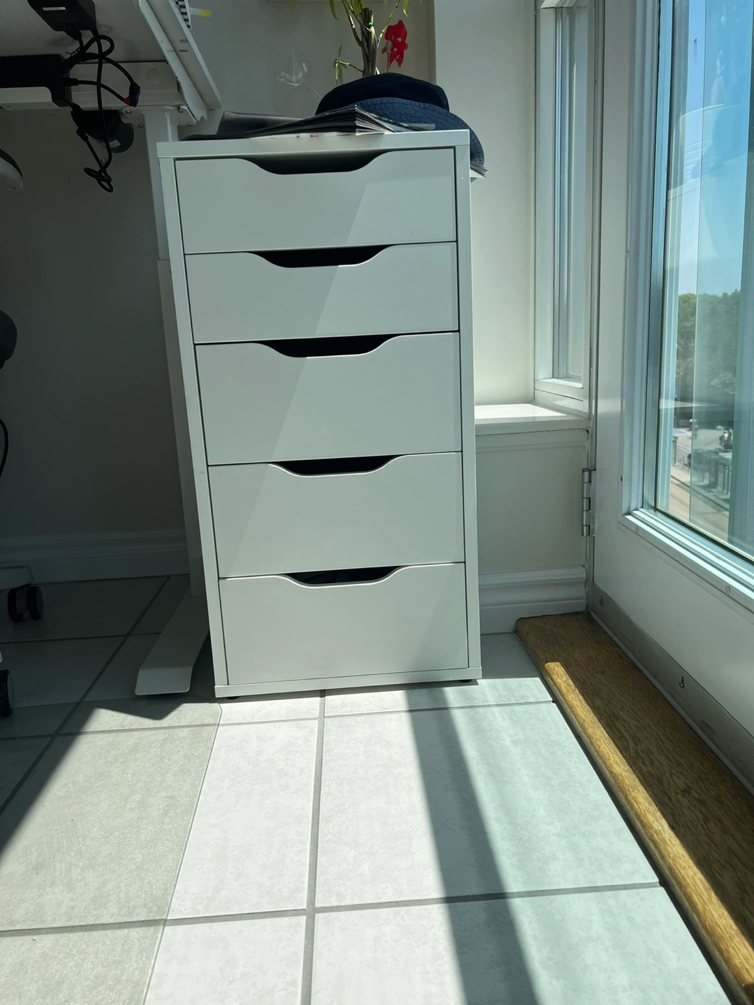 680Selling an IKEA Alex drawer unit in white. It has five drawers and is perfect for organizing your space. Works perfectly, just has some signs of wear and tear (pictured). 💵 cash only pls! Per/child/smoke free home If the ad is still up it means it’s available. 🚨 Part of our move-out sale — check my other listings for more great finds!