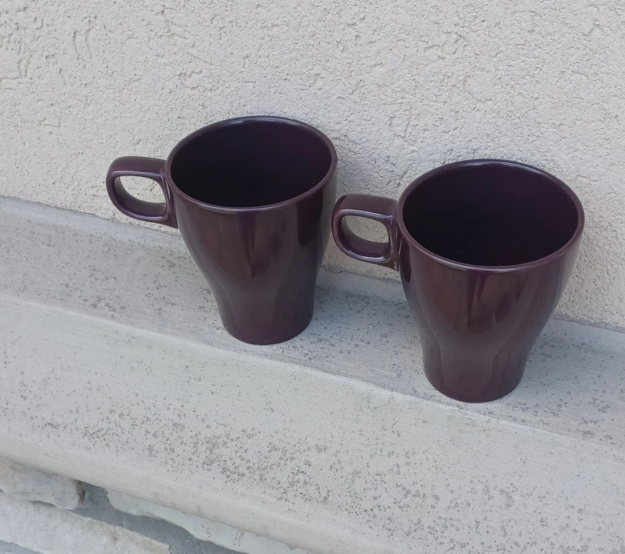 Selling a set of two IKEA mugs in a lovely brown colour! They're in great shape and ready for a new home. Perfect for your morning coffee or tea.