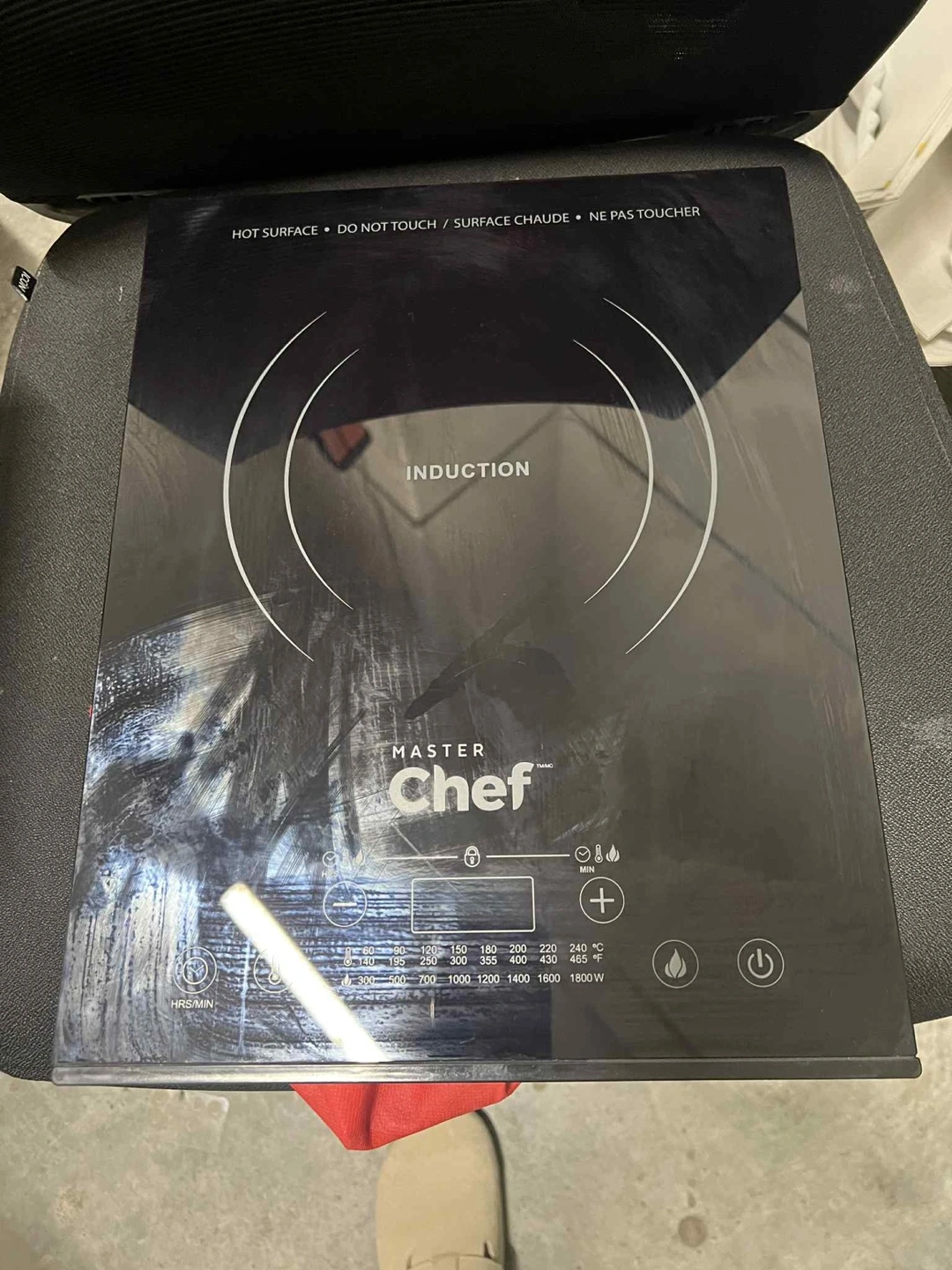 Selling a Master Chef induction cooktop. It has a sleek design and is easy to use. The cooktop features an induction heating system for quick and efficient cooking. It also has a hot surface indicator for safety.