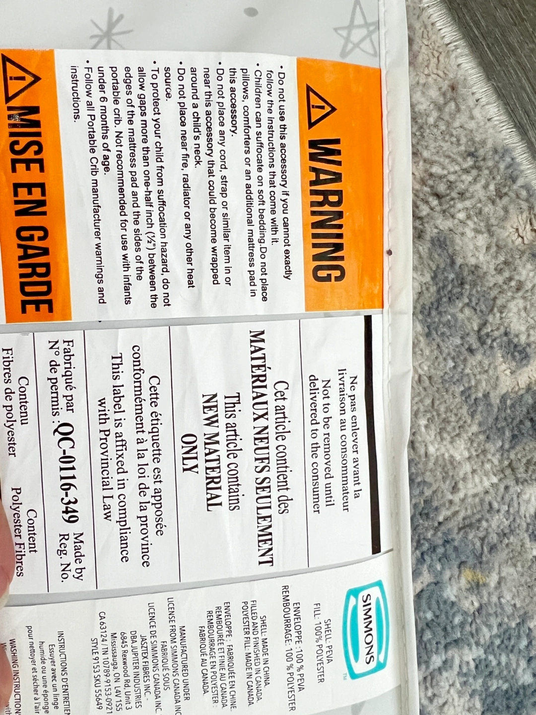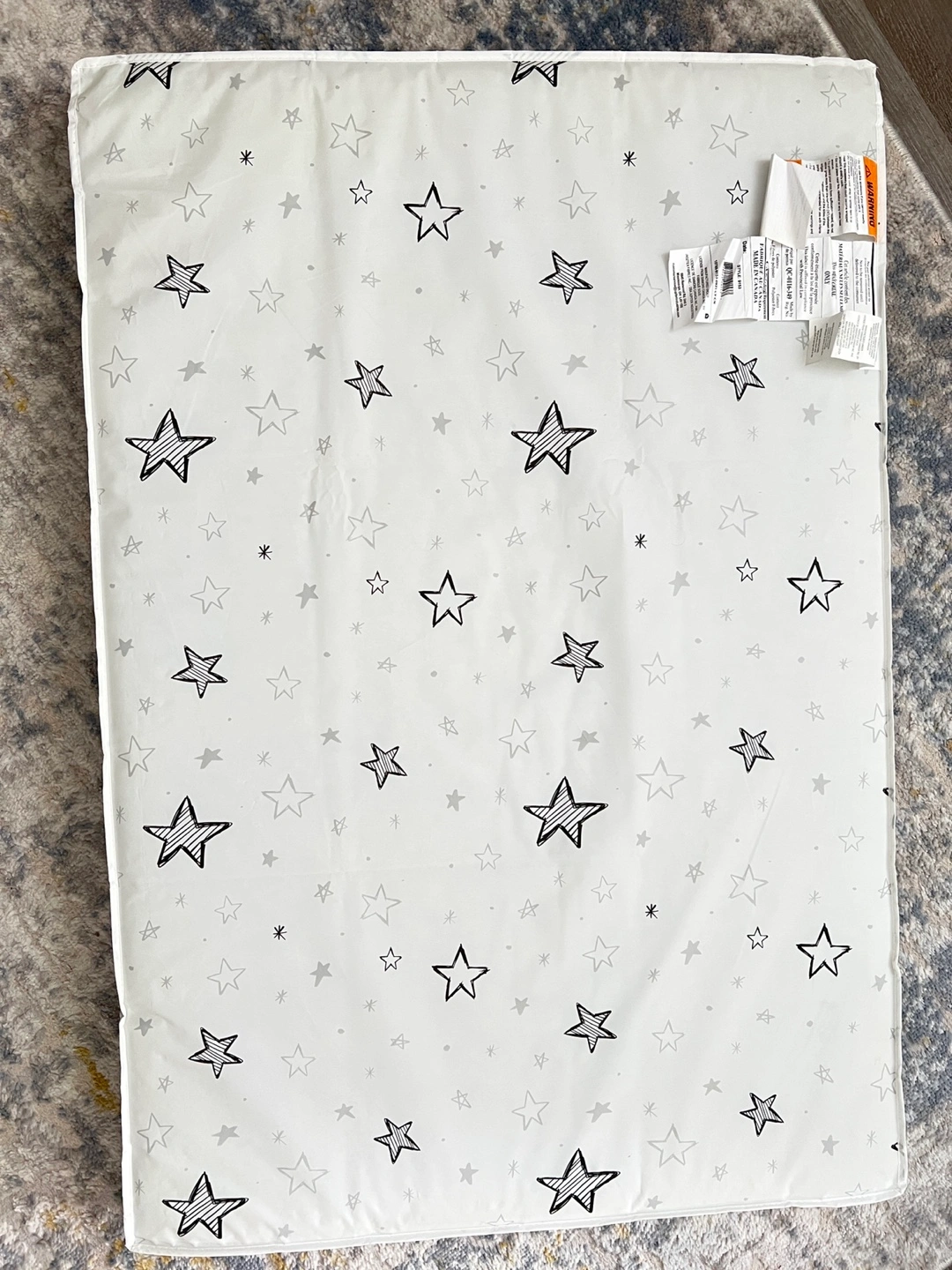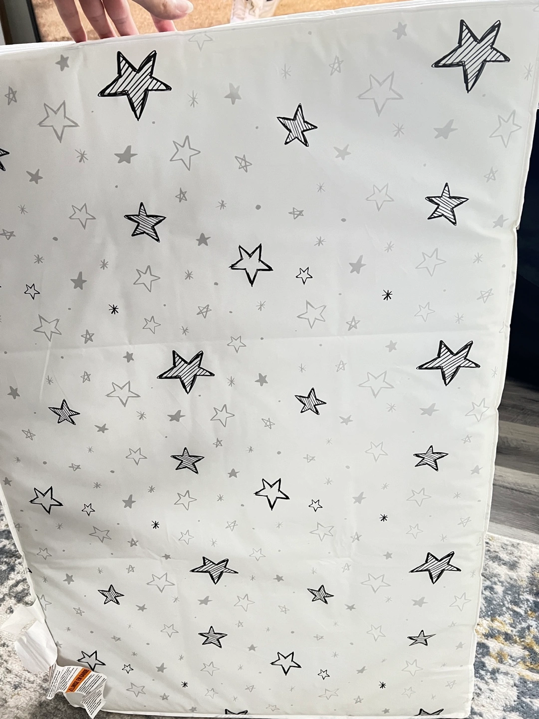 Selling almost new Simmons portable crib mattress! This mattress is barely used and It comes with a cute star pattern.