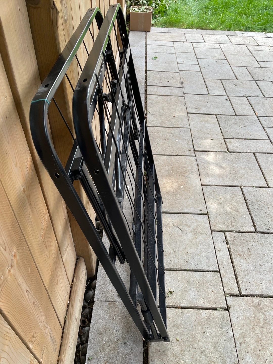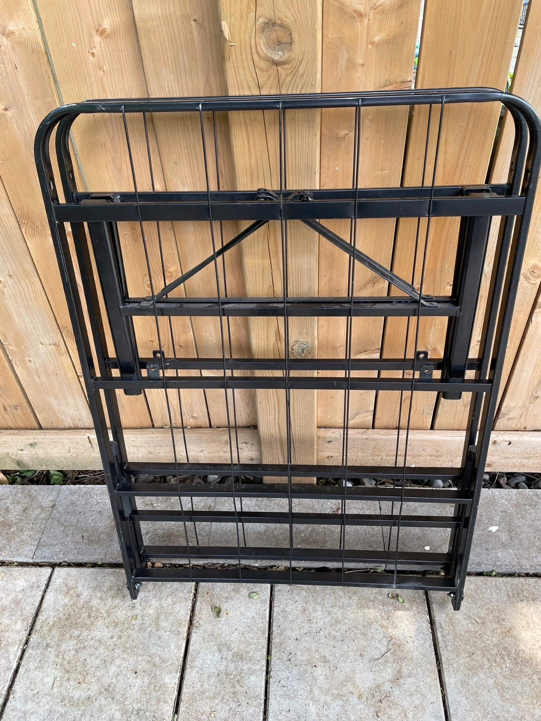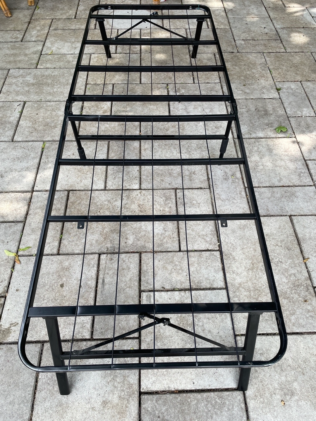 Selling a sturdy black metal bed frame! It's in great shape and ready to support your mattress. Perfect for a minimalist bedroom setup