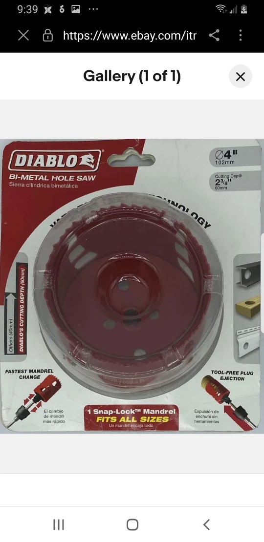 Selling a brand new Diablo 4" Bi-Metal Hole Saw! It features: