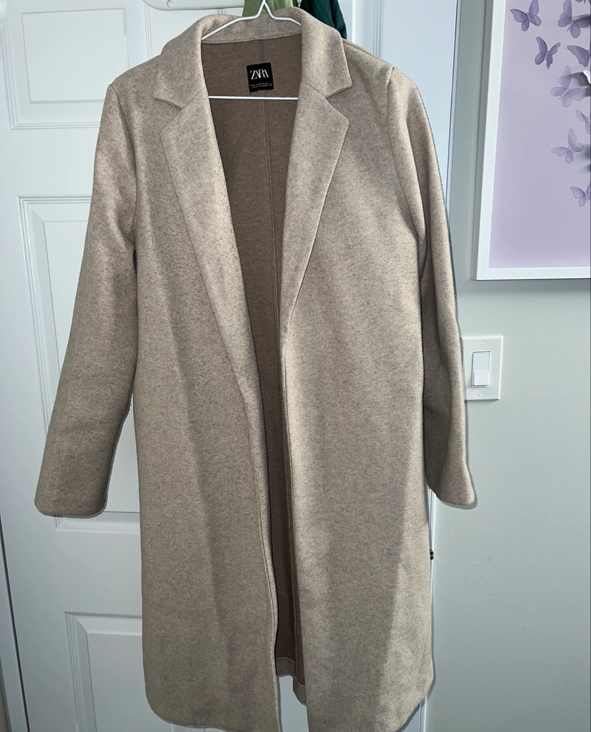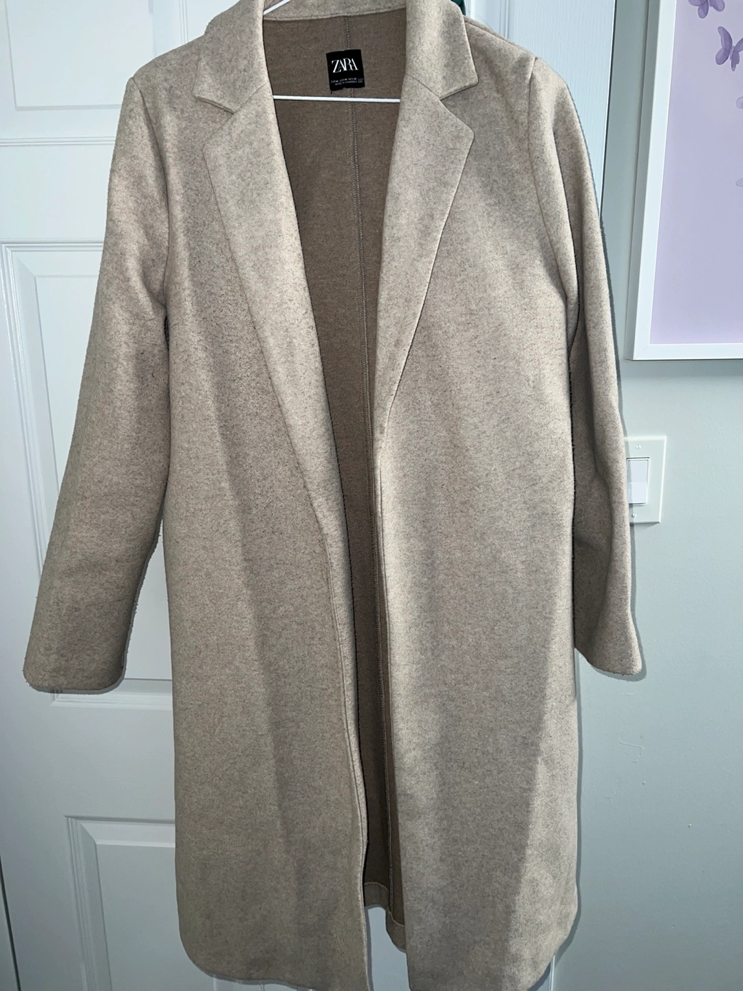 Selling a Zara beige coat in size M. It's in good condition may be needs a bit of lint removal. Already dry cleaned and perfect for layering during the cooler months! The neutral colour makes it easy to pair with any outfit. Feel free to message me with any questions!