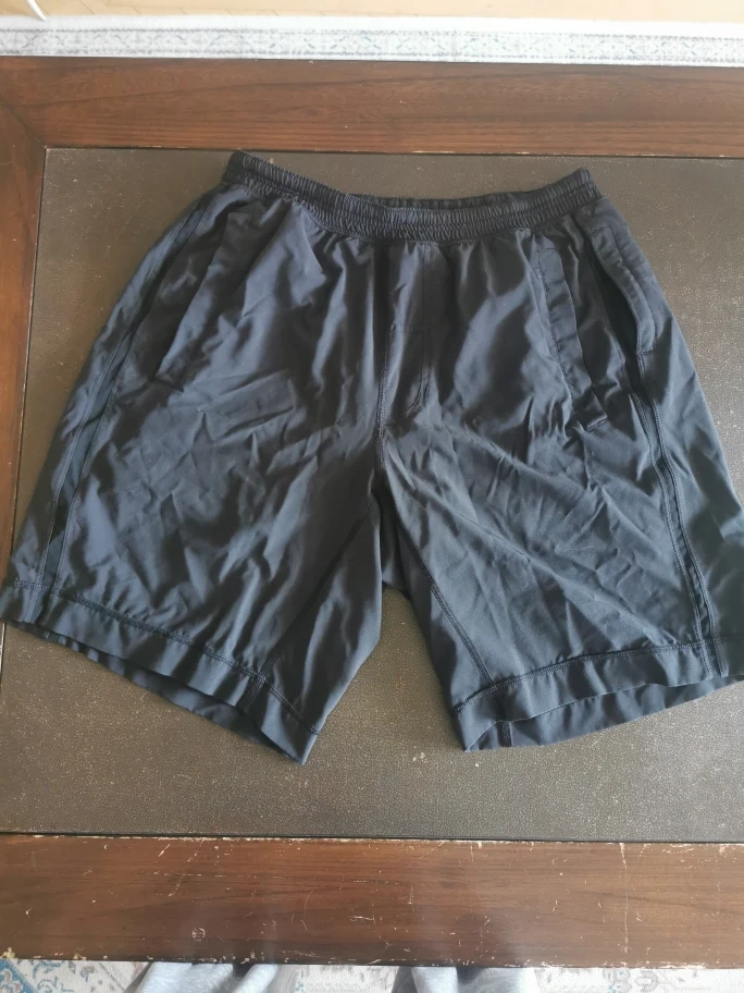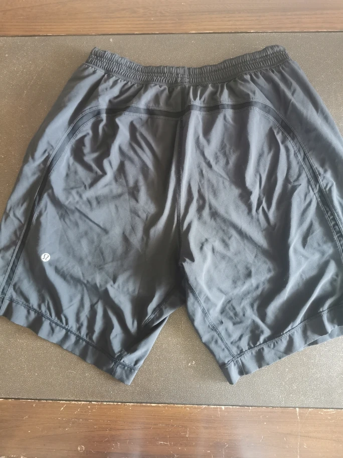 Selling a pair of Lululemon men's running shorts in black. size is based on measurements Perfect for running or workouts! lined zip pocket