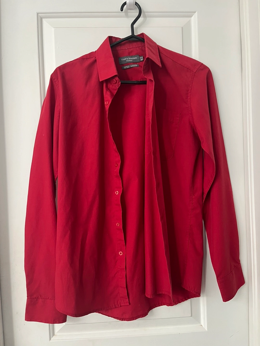 Here's a stylish red fitted shirt from Vroom & Dreesmann! It's a size small and in great condition. Perfect for adding a pop of color to your wardrobe!