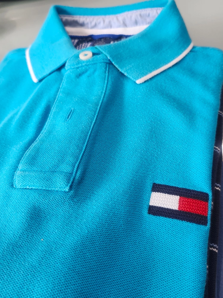 Selling a Tommy Hilfiger polo shirt in great condition! It's a slim fit and size small. The colour is a vibrant turquoise. Perfect for a casual day out!