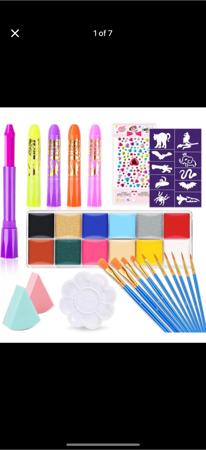 Get ready for some creative fun with this face paint kit! It includes 12 classic face paint colors, 4 fluorescent face colors, 10 paint brushes, 10 stencils, a diamond sticker, 2 sponges, and a plum blossom tray. Perfect for Halloween, parties, or just letting your imagination run wild!
