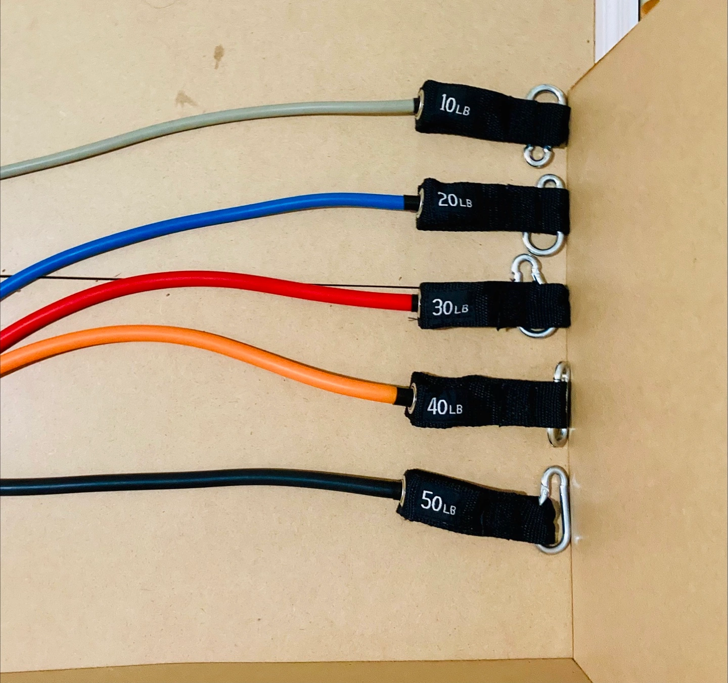 Get a full body workout with this GOZONE resistance band set! The set includes 5 resistance bands with the weights being 10LB, 20LB, 30LB, 40LB, 50LB, allowing you to customize your workout intensity. Also included are the handles, a strap with a door stop so you can attach it to a door and a carrying bag for easy storage and portability.