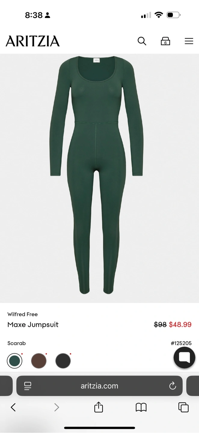 Selling an Aritzia Wilfred Free Maxe Jumpsuit in the Scarab colour. This jumpsuit is super comfy and stylish! It originally retailed for 55CAD