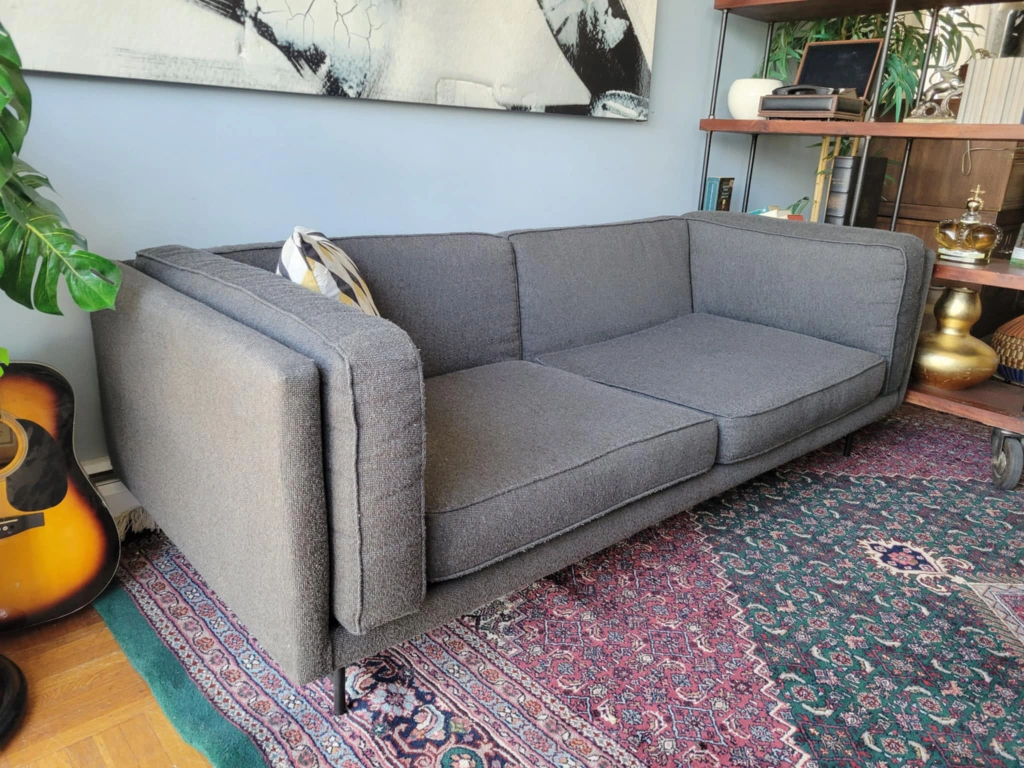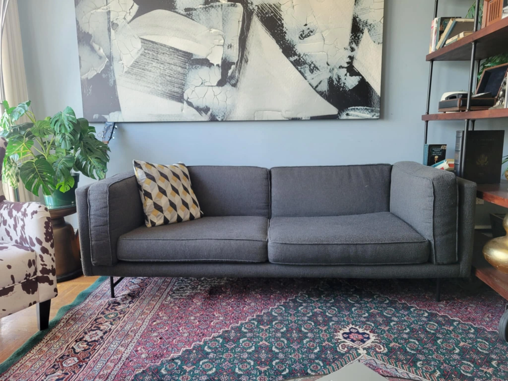 99Selling this sleek and modern dark gray sofa in excellent condition! Perfect for any living room, office, or studio space. Minimalist design with clean lines and a sturdy build. 📏 Dimensions: Length: 80" Depth: 36" Height: 28" Seat Height: 16" ✨ Features: Comfortable and supportive seating Stylish low-profile frame Sturdy metal legs Neutral dark gray fabric matches any décor 🧼 Smoke-free, pet-free home. Very gently used with no sagging or major wear. Modern sofa Gray couch Living room furniture Used furniture Couch for sale Minimalist home Apartment furniture Mid century style Home decor Furniture deals Sofa sale Secondhand styleInterior design comfortable couch Furniture finds
