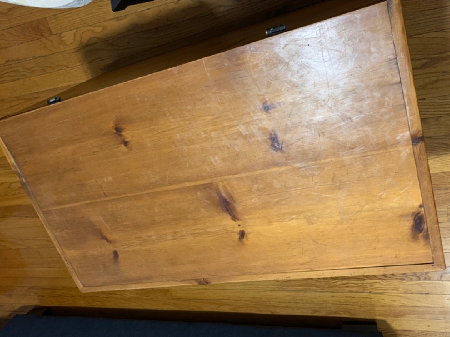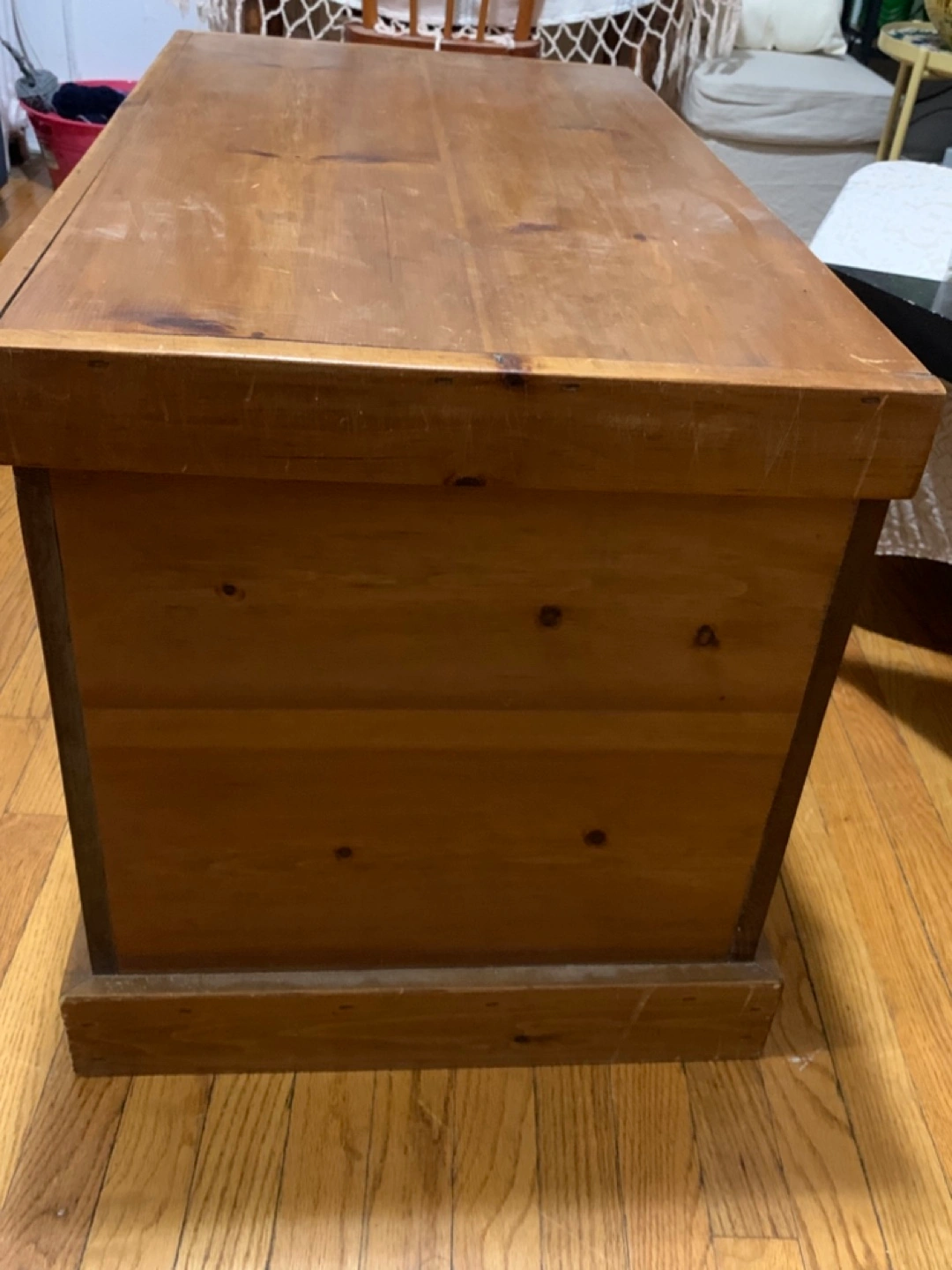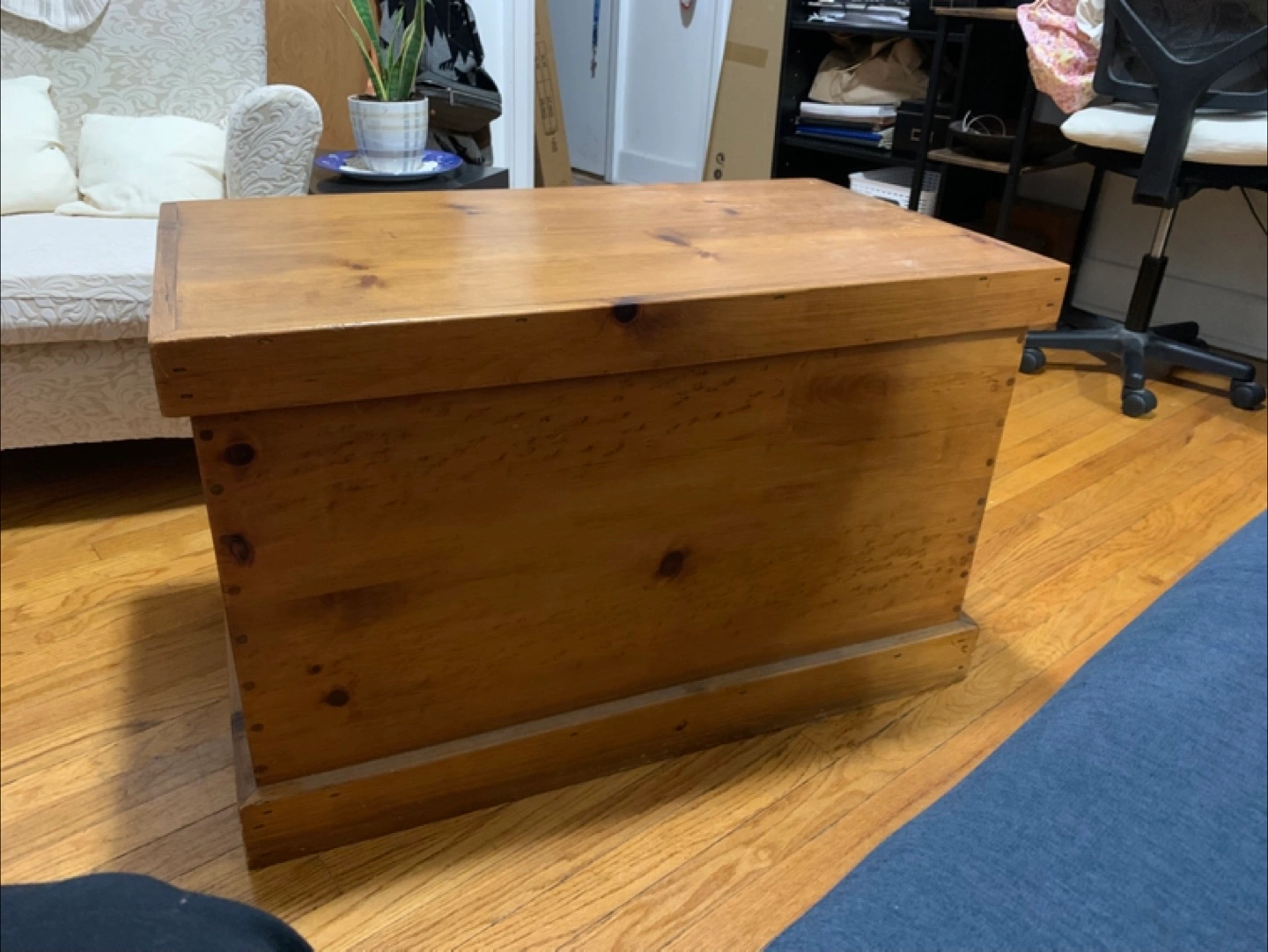 Would like it gone asap! Giving away a wooden storage chest. It's a great piece for adding some extra storage space to your home. Solid wood, clean. Small scratches on top can be easily sanded out.