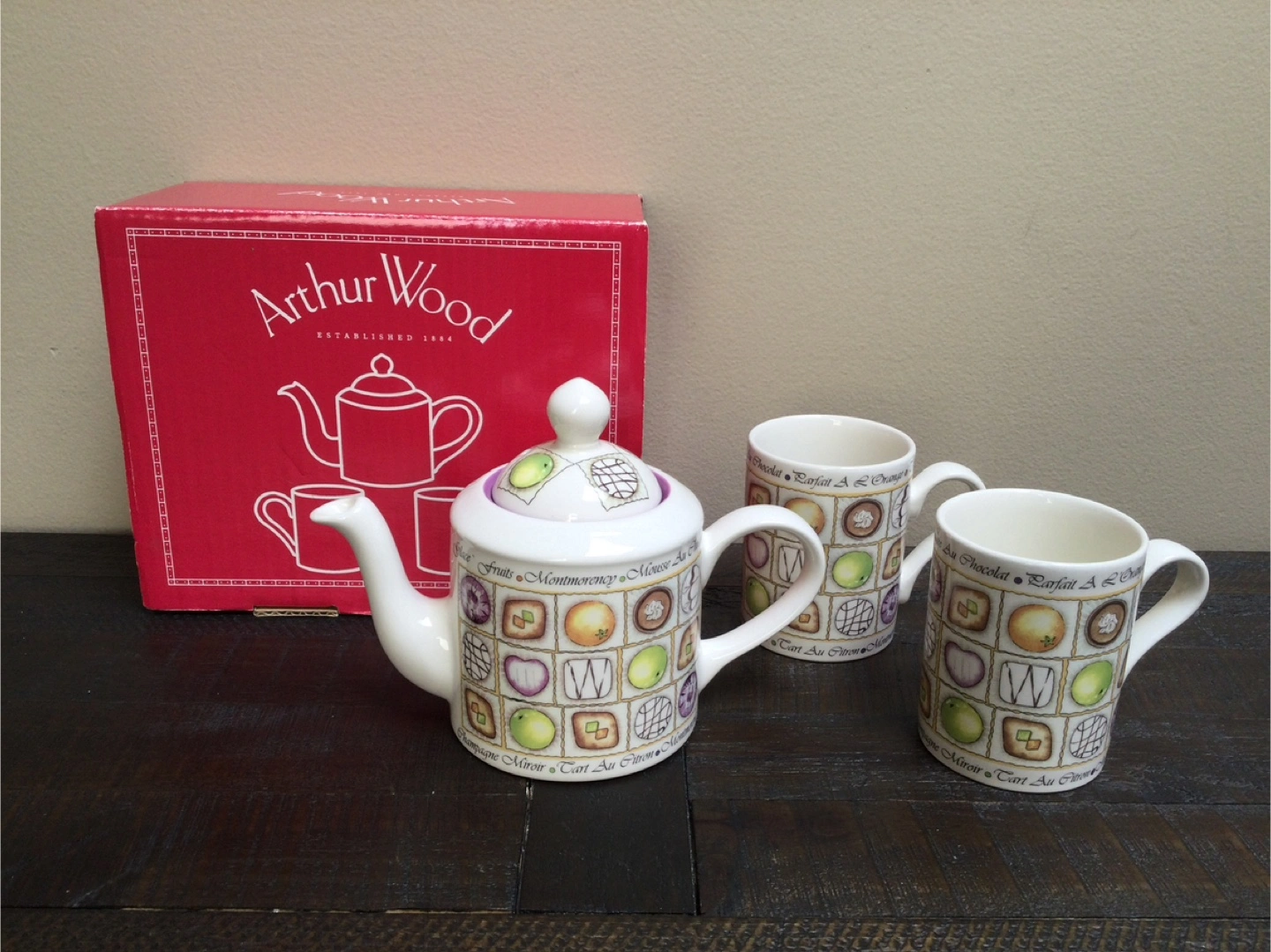 Arthur Wood tea for 2 set made in England, new in original box, vintage chocolate box collection, they were stored away for many years. Selling it for $25