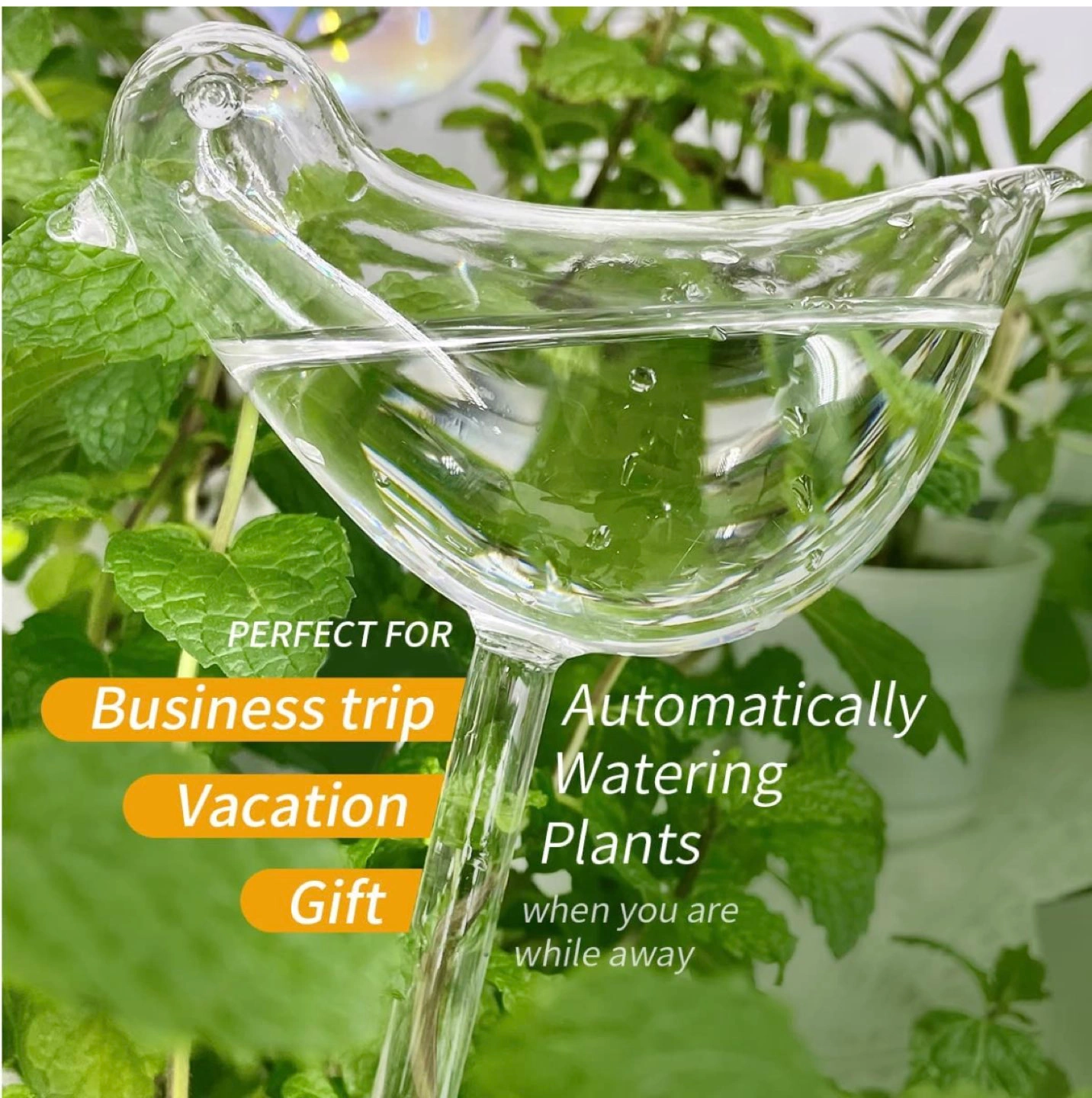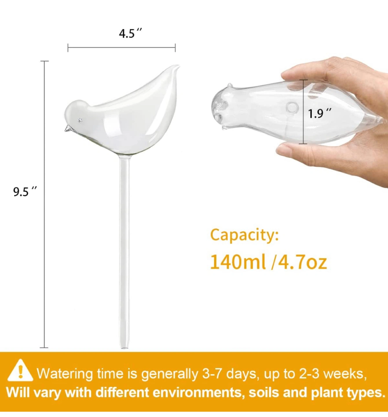 Bird-shaped clear glass plant watering bulb lets you see the amount of water and remind you when to add water. Beautiful plant accessories watering tools can be used to water indoor/outdoor plants and also to decorate your garden.