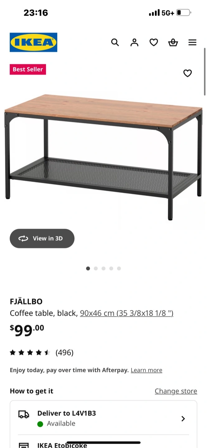 Selling an IKEA FJÄLLBO coffee table in black and wood. It's in good condition and perfect for any living room! The dimensions are 90x46 cm (35 3/8x18 1/8 ").