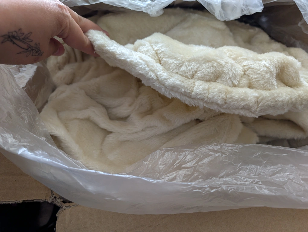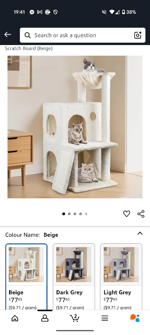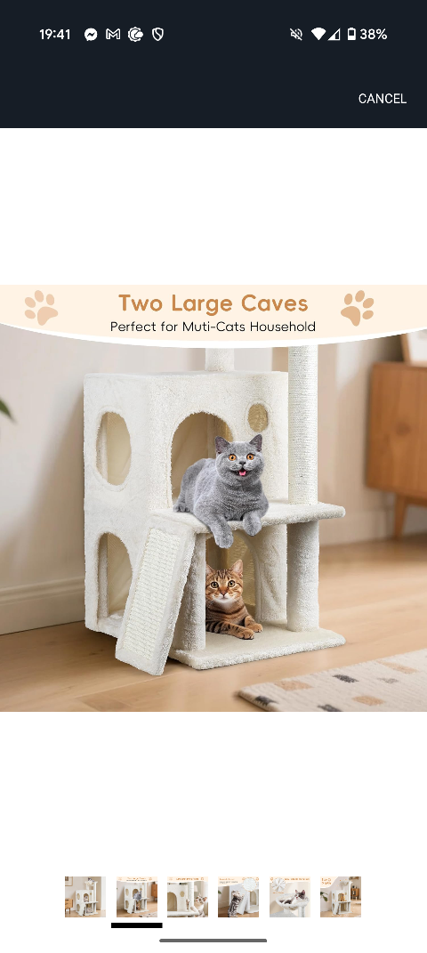 Brand new still in packaging and never assembled. I ordered the dark grey and somehow received the beige (which would show her dark fur terribly). Return window is closed and I didn't wanna haul this to Staples to ship back anyway.