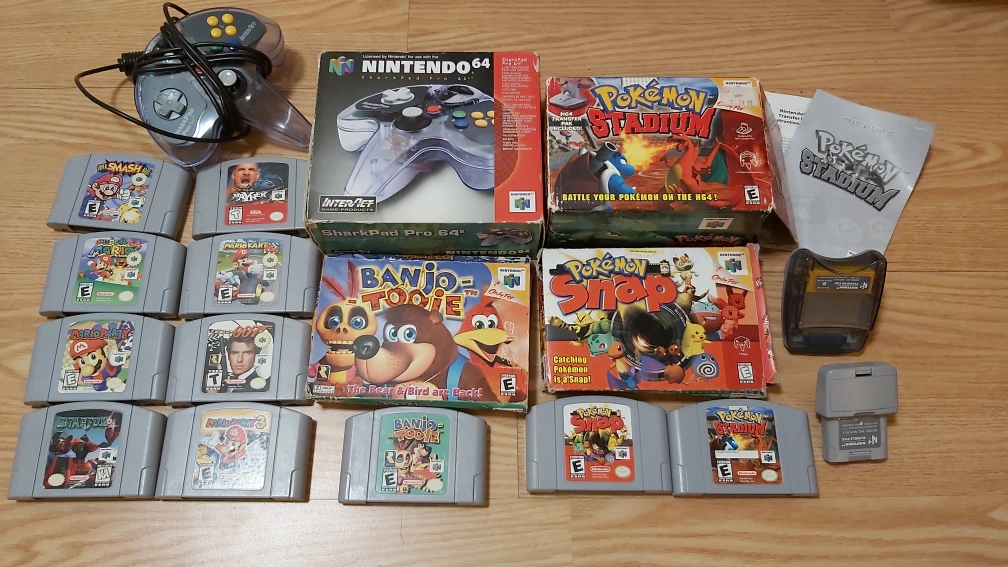 11 N64 Games including Pokemon stadium, Mario party 1 and 3, goldeneye, Mario kart, super smash bros and more