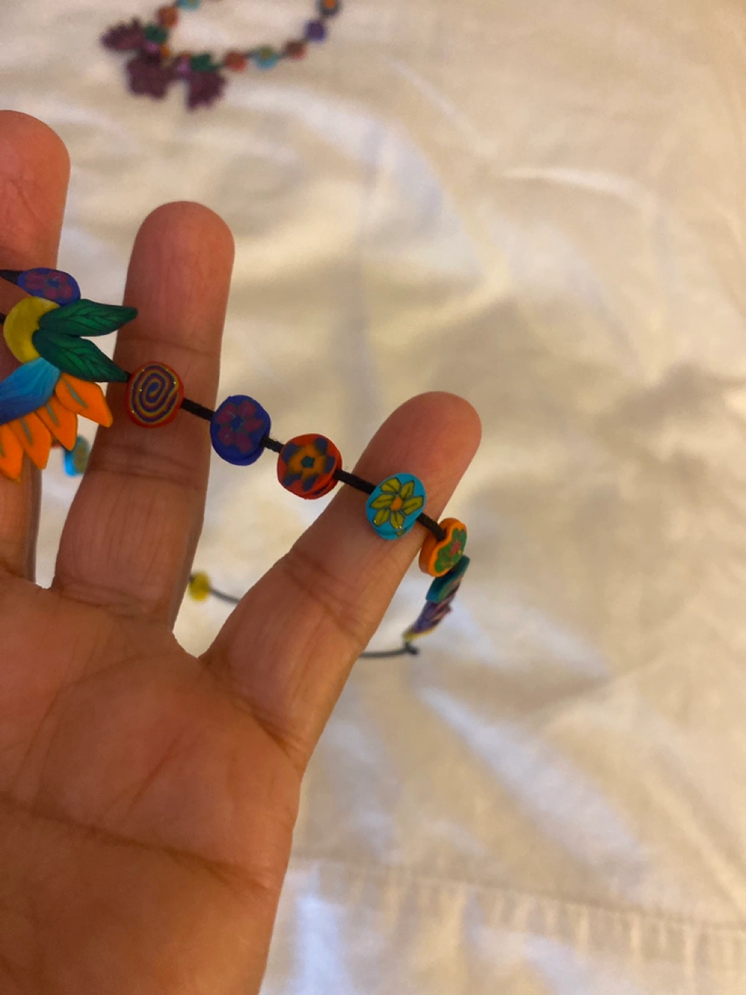 Selling a handmade beaded necklace! feature cute floral and hummingbird designs with colourful beads. Great for adding a unique touch to your outfit