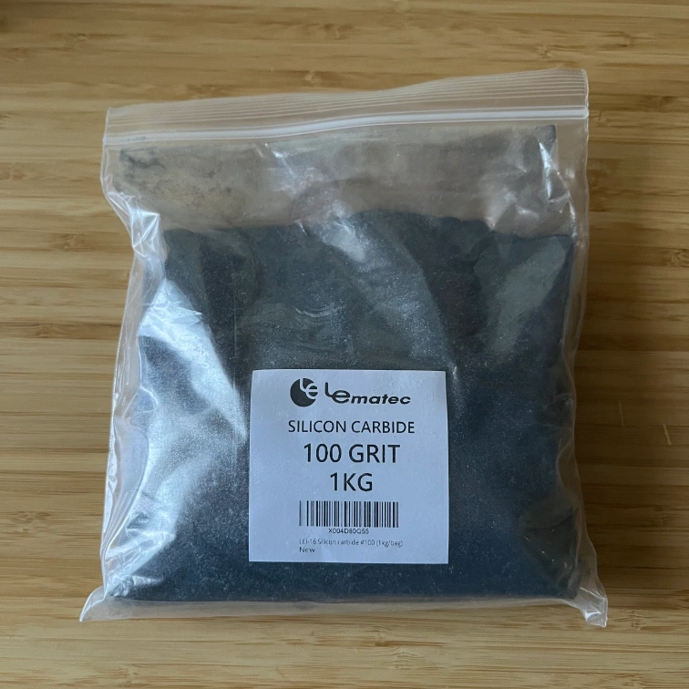 New bag of Le Lematec Silicon Carbide, 100 grit Sandblasting media. The bag contains 1 KG or 2.2 LBS of the material. It's new and ready for your next project! This is a high-impact hard abrasive type media, perfect for stripping stains, rust, paint, pigments, and dirt.