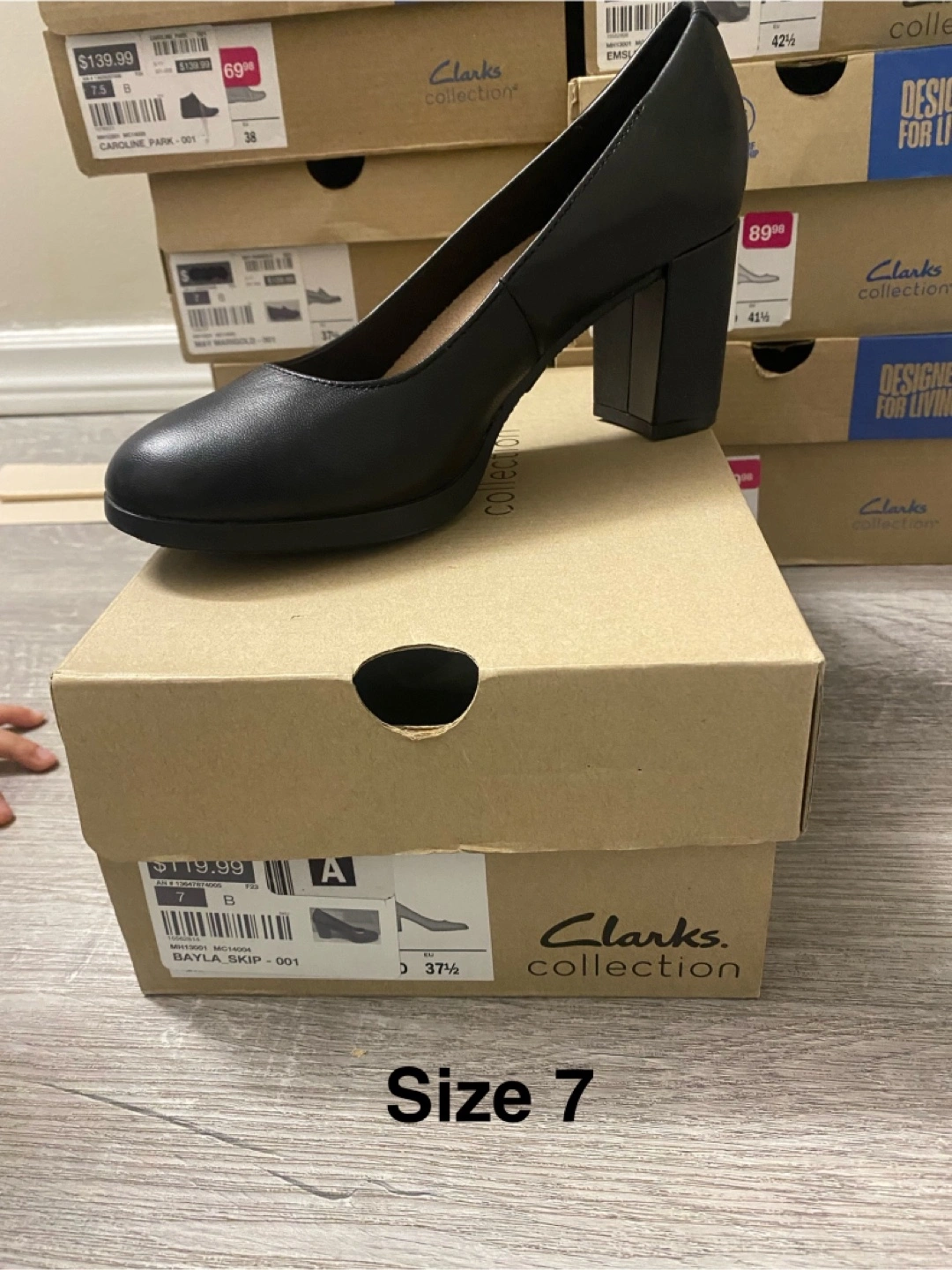 Selling a pair of Clarks Bayla Skip heels in black, size 7. They're in brand new condition and come with the original box. Originally bought for $139.99
