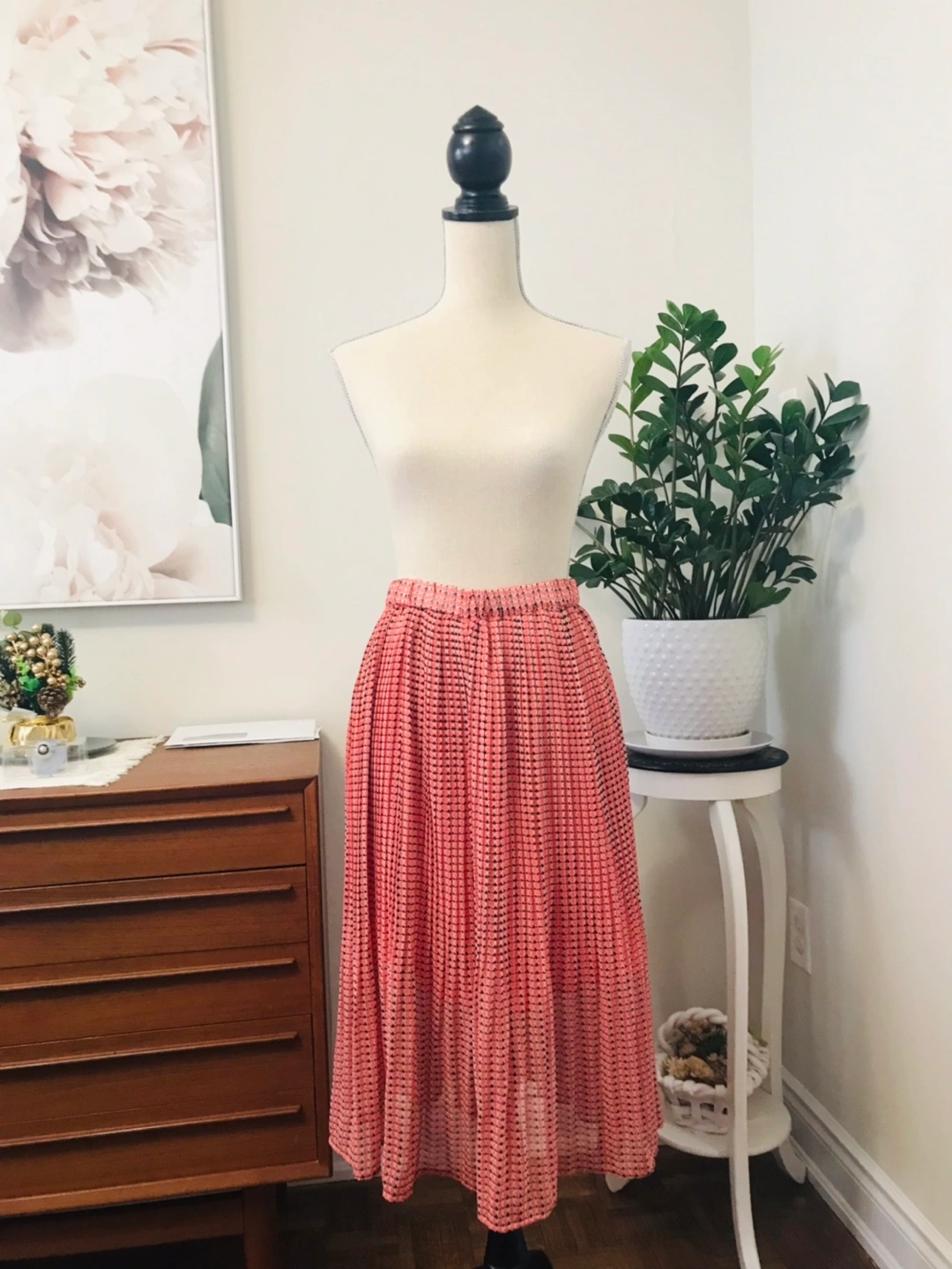 Banana Republic Coral Pleated Midi Skirt