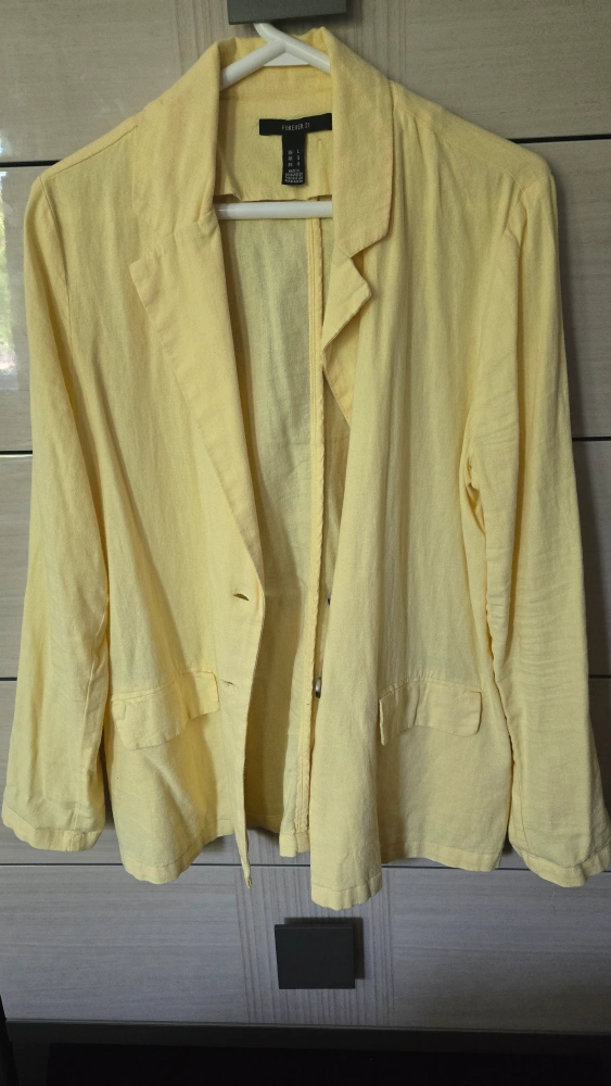 Selling a Forever 21 blazer in size large. It's a lovely yellow colour and would be perfect for spring or summer!