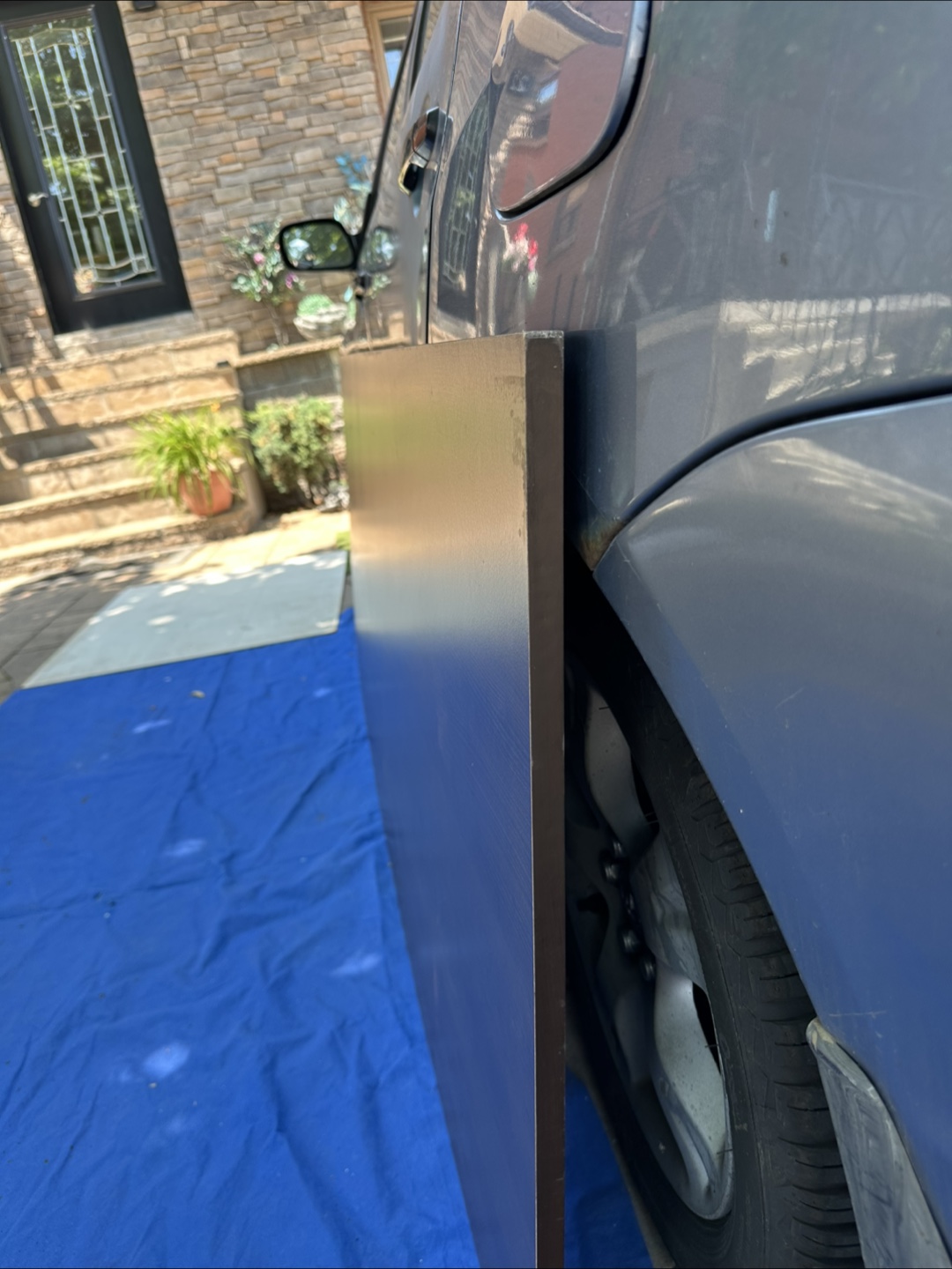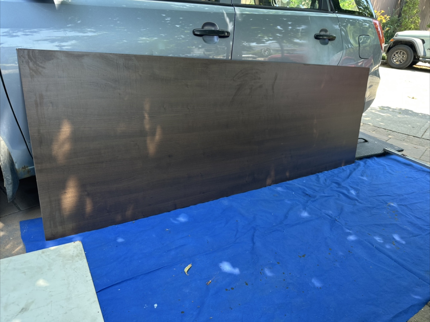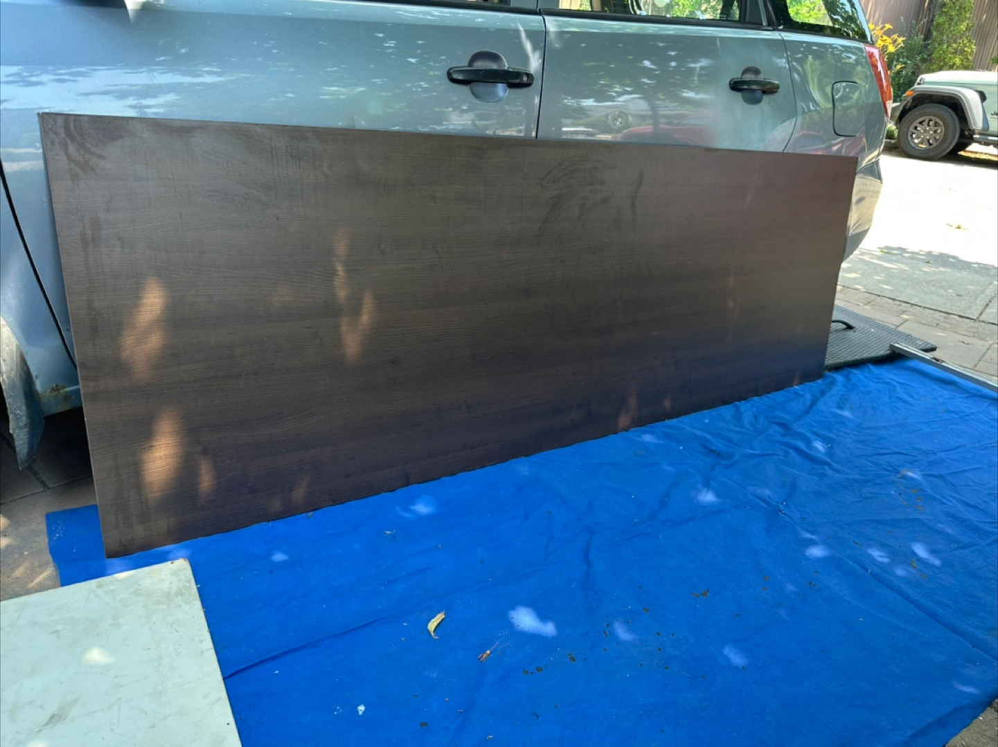 Selling a wood panel in a dark brown colour. It's in good condition and would be great for a variety of projects .