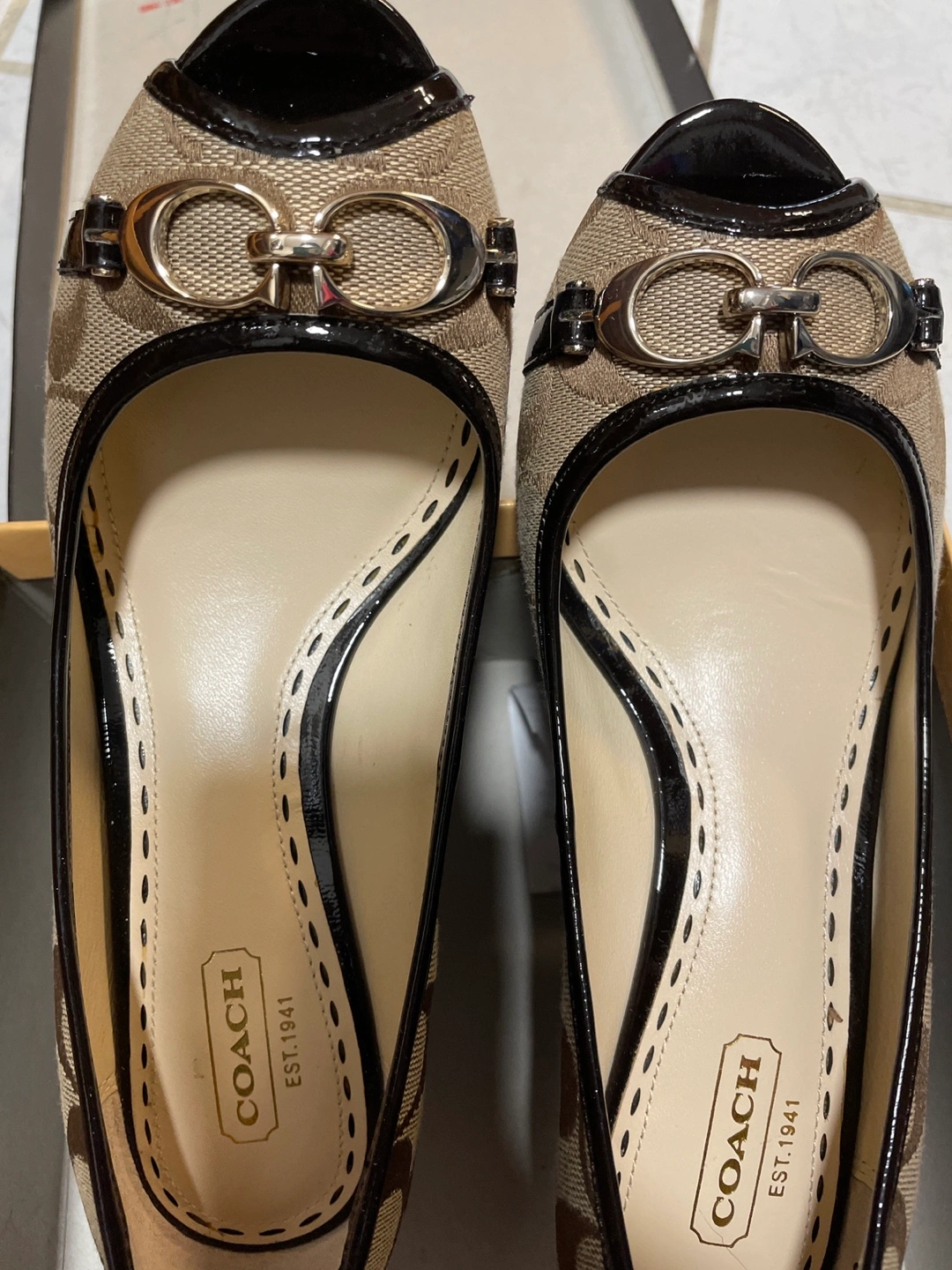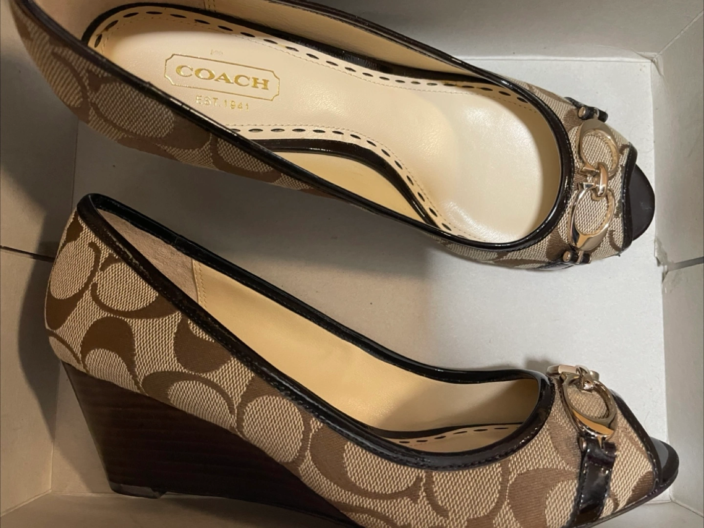 Selling a pair of Coach wedges in size 6. They feature the classic Coach pattern and are in great condition. Cash, self pickup.