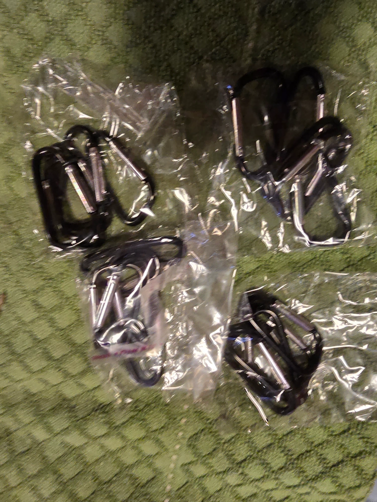 Selling a set of carabiner clips still in their original packaging! They look like they would be great for keys or attaching things to a backpack.