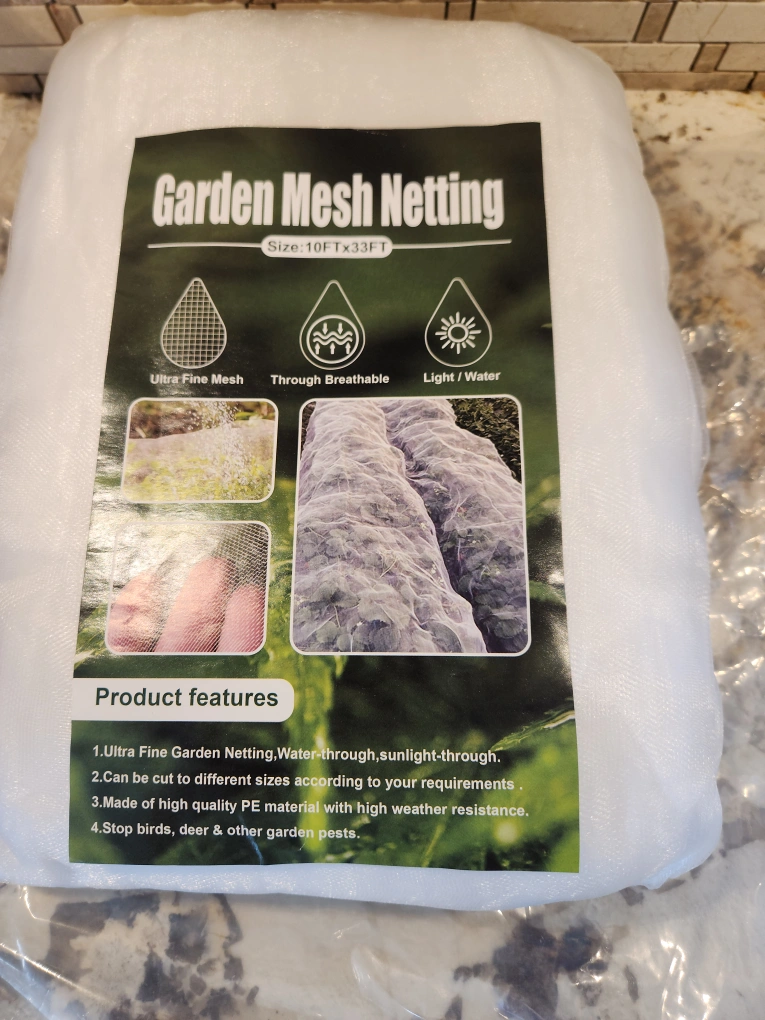 I'm selling new garden mesh netting, perfect for protecting your plants! It's ultra-fine, water-through, and allows sunlight through. You can cut it to different sizes to suit your needs. Made of high-quality PE material with great weather resistance, it helps keep birds, deer, and other garden pests away