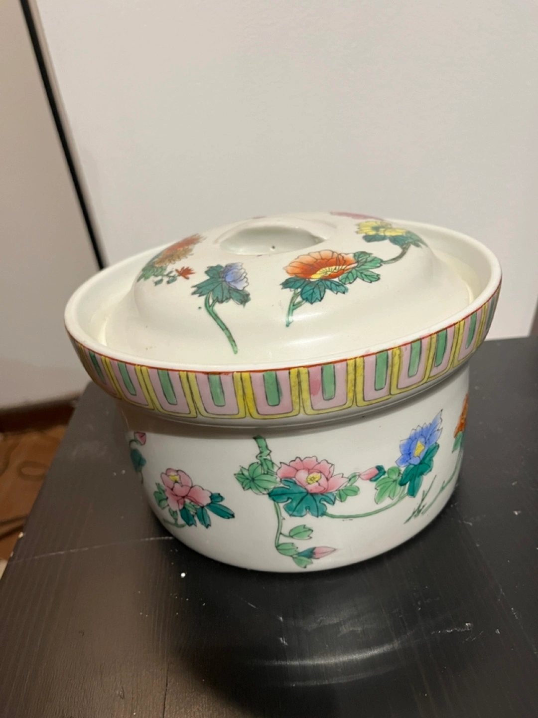 Vintage floral Chinese covered casserole dish 1980s