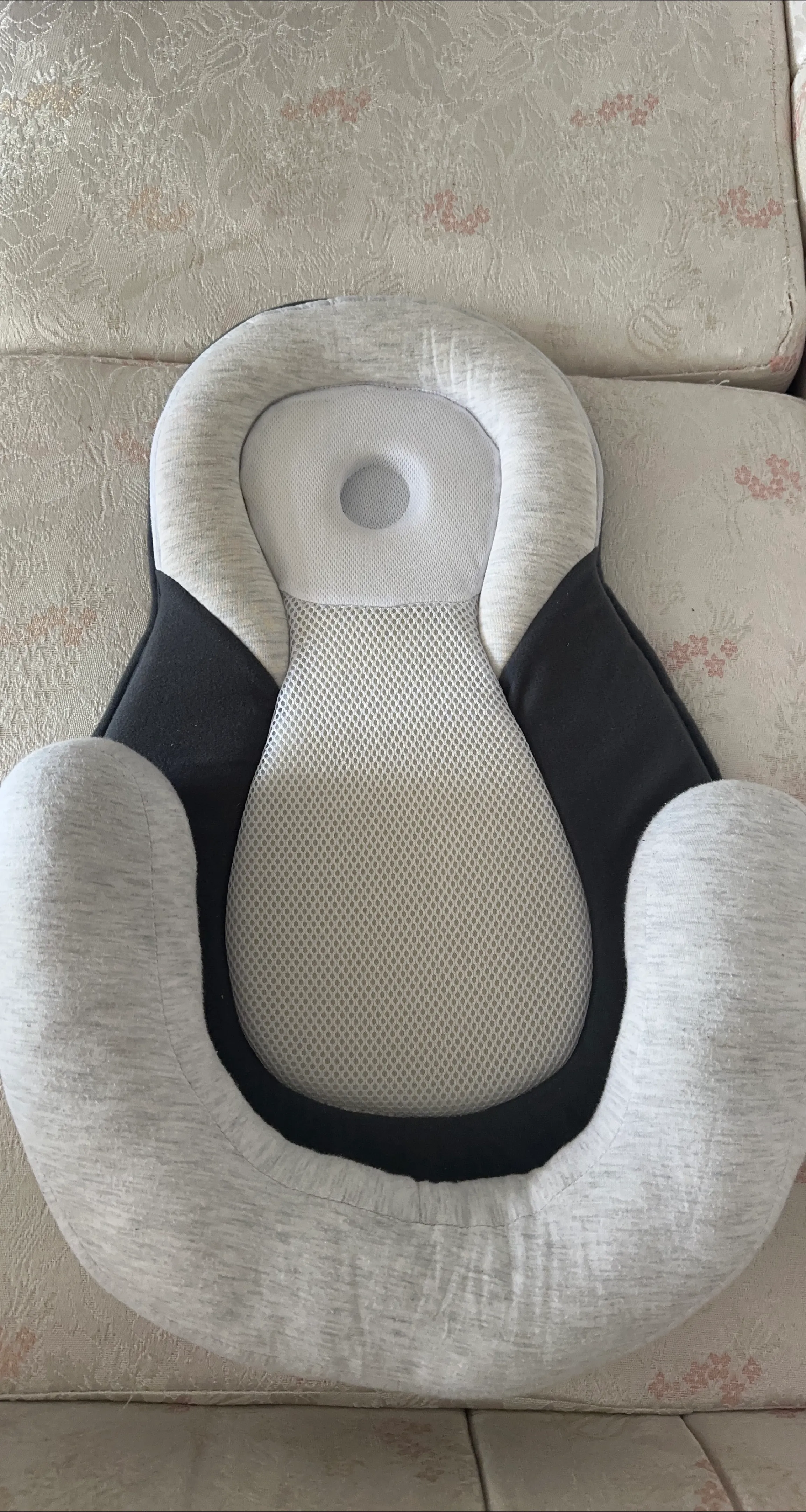 This baby head and body support pillow is in great condition. It provides support for your baby's head and body while they are lying down. The pillow is made of a soft, breathable material that is comfortable for your baby. It's designed with a headrest and body support to keep your little one snug and secure