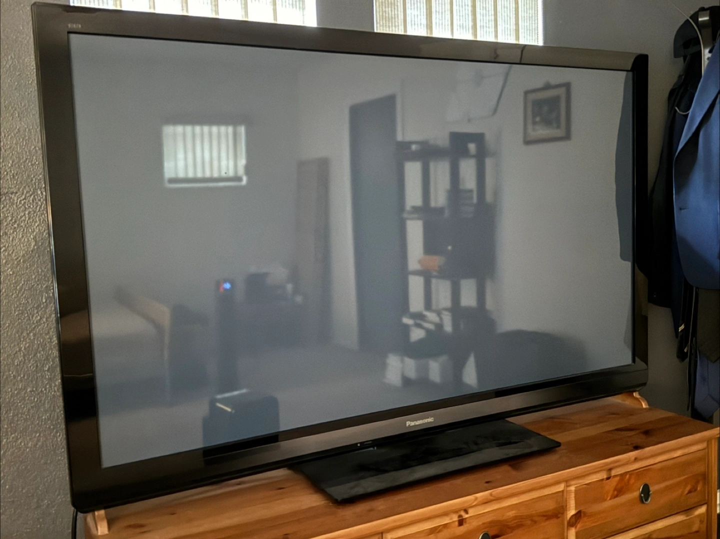 Huge plasma screen television. Black frame. Good condition and still works. Selling because we want to upgrade to a 83” TV. Pickup only.