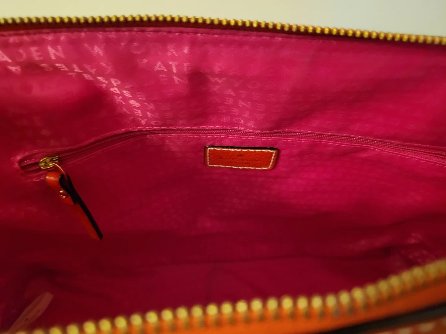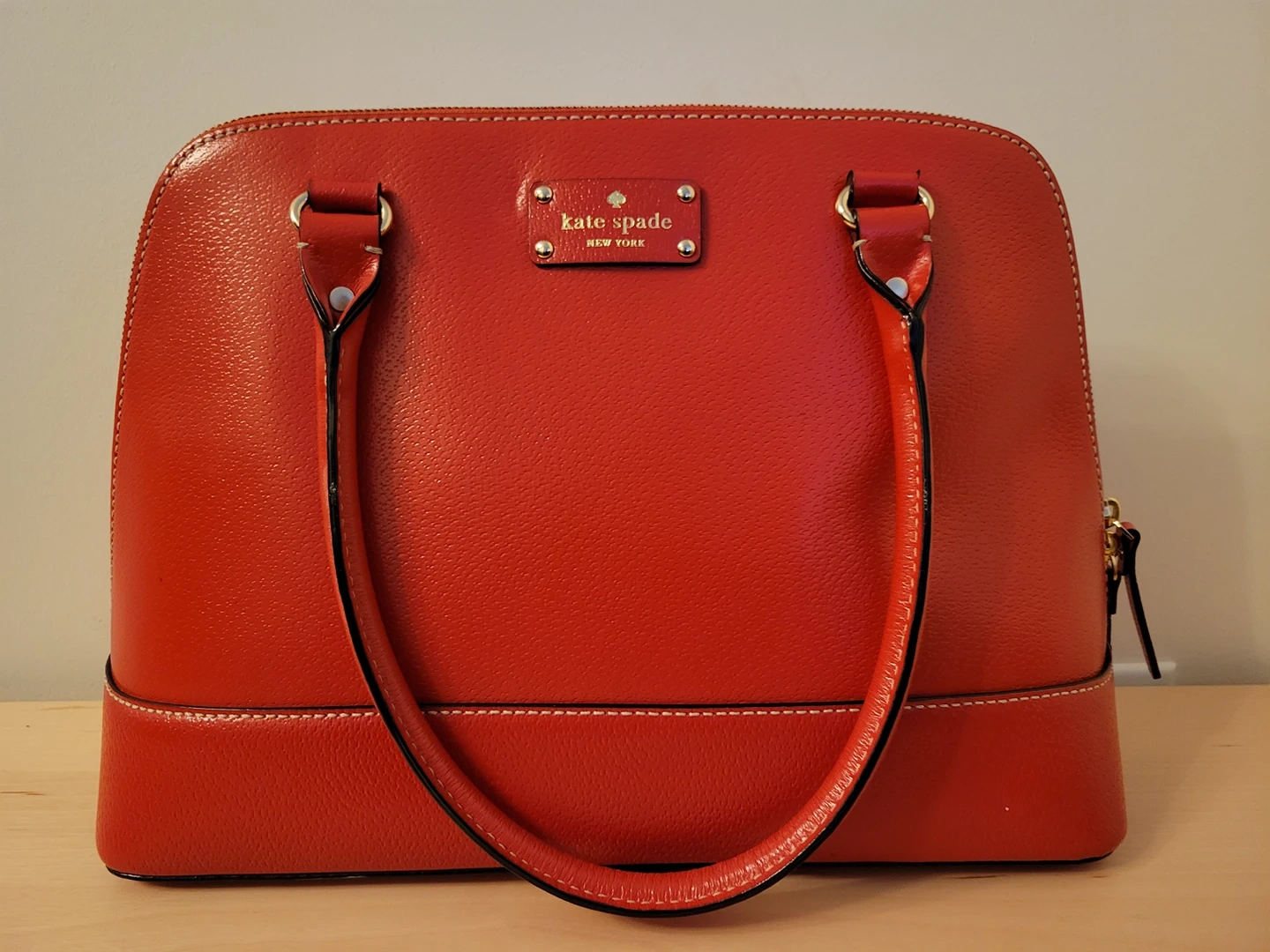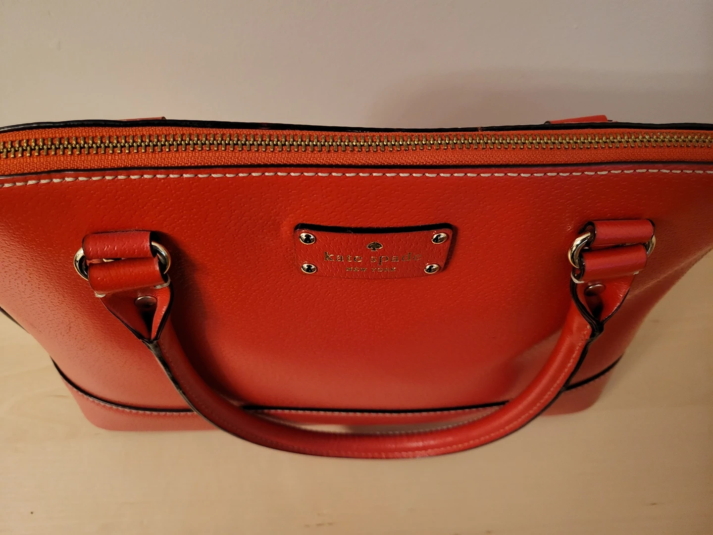 Kate Spade Shoulder Tote Bag in bright cherry red. Spacious with unobstructed main space, a back zipper pocket on the interior, and another back zipper pocket on the exterior. Full zip closure on top. No scratches on the outside or interior. Comes with Dust Bag.