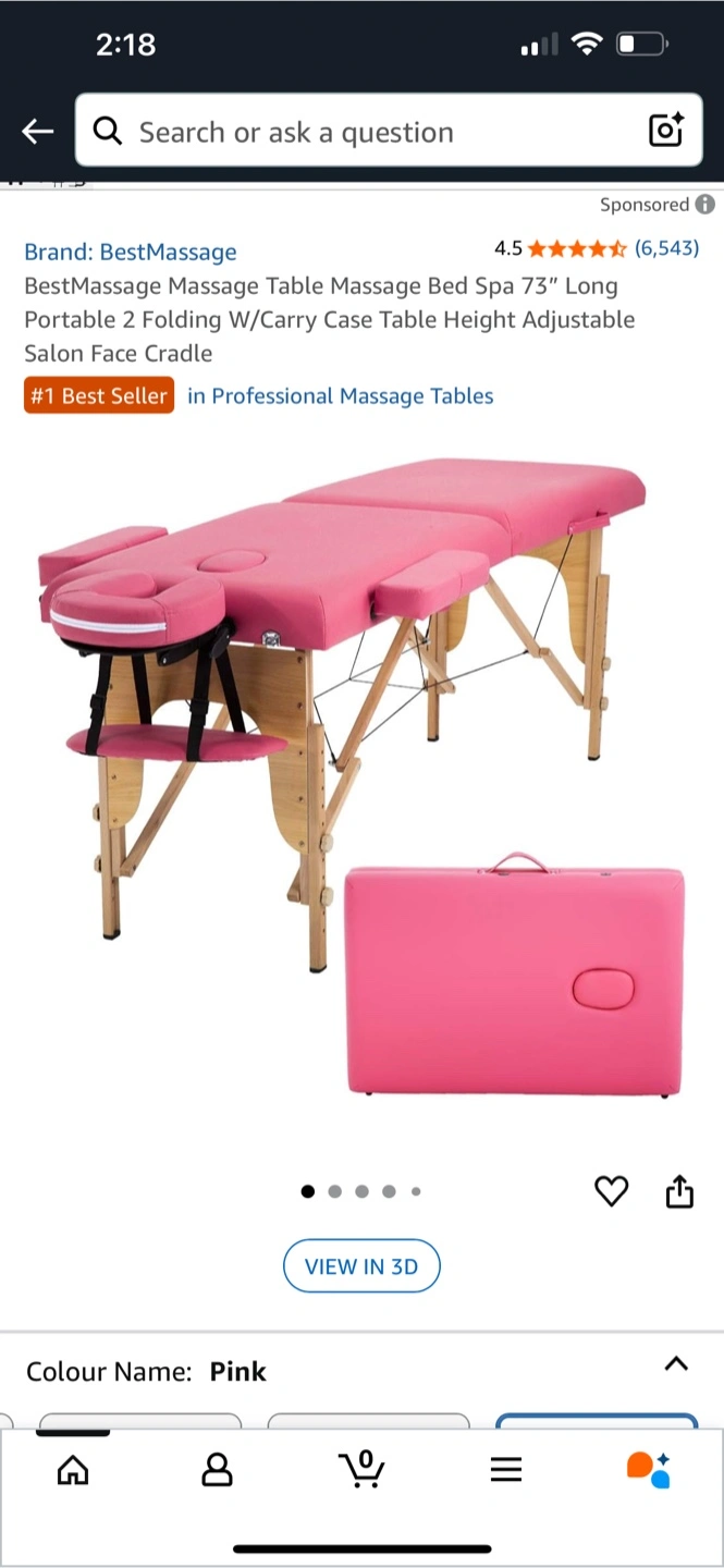 Selling a pink BestMassage portable massage table lightweight easy to carry and setup. It's 73" long and folds for easy transport. The height is adjustable between 24-34 inches. It comes with a carry case!