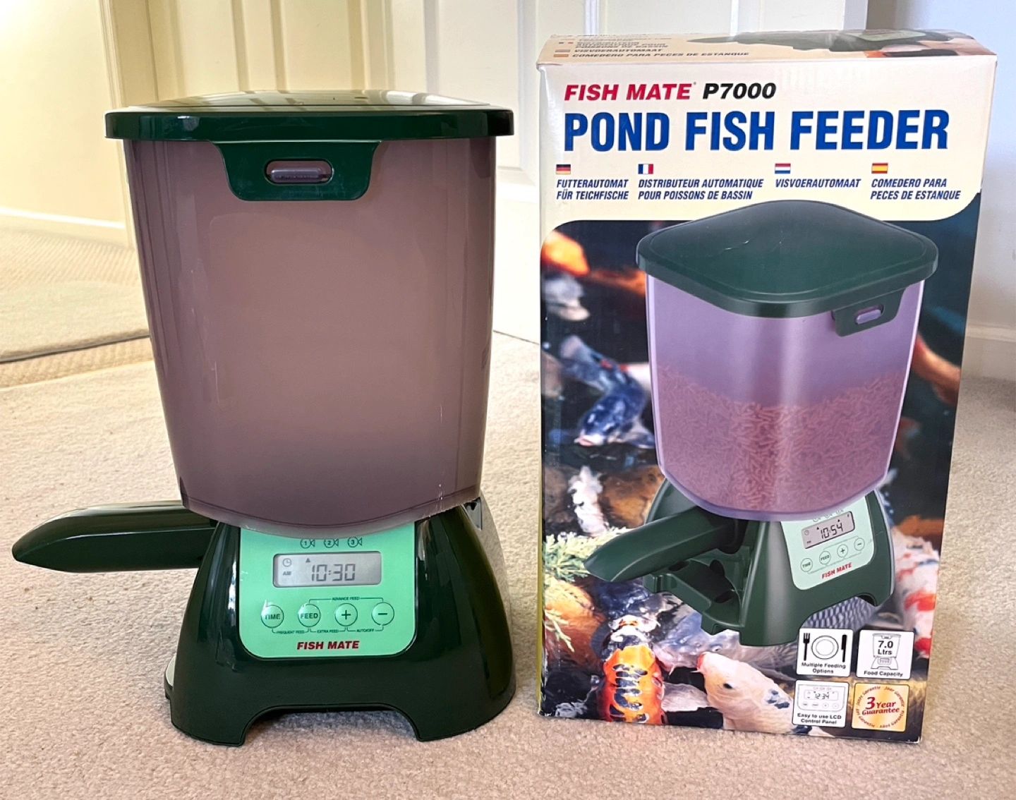 Like New! Barely used! Fish Mate P7000 Large, 6 lbs Capacity, Rain-Resistant Automatic Pond Fish Feeder