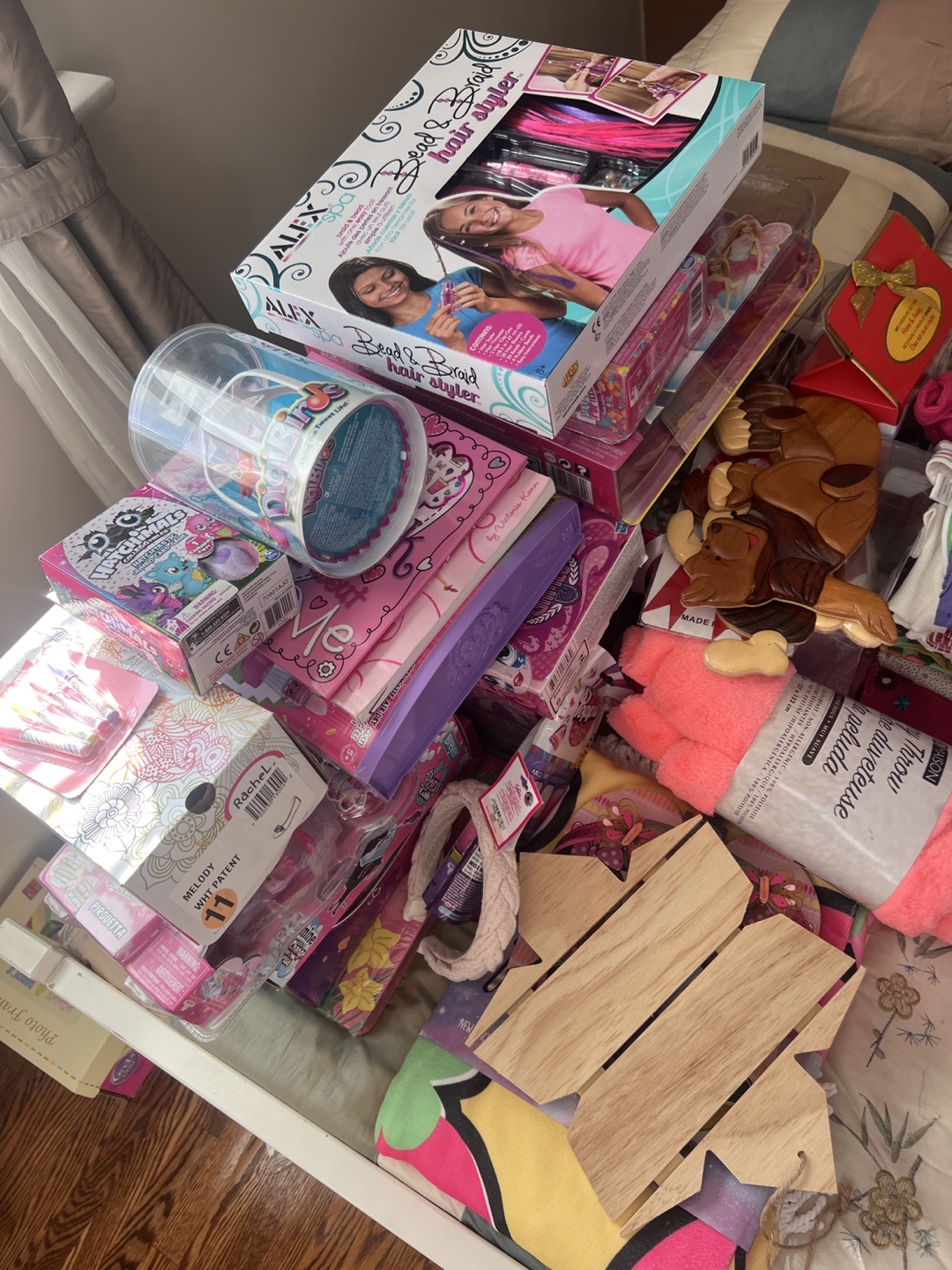 Various items including arts and crafts, dolls, and hair styling toys. Go take a look at my profile and see what is available and see all the items individually. If you buy more together, i can make it cheaper.