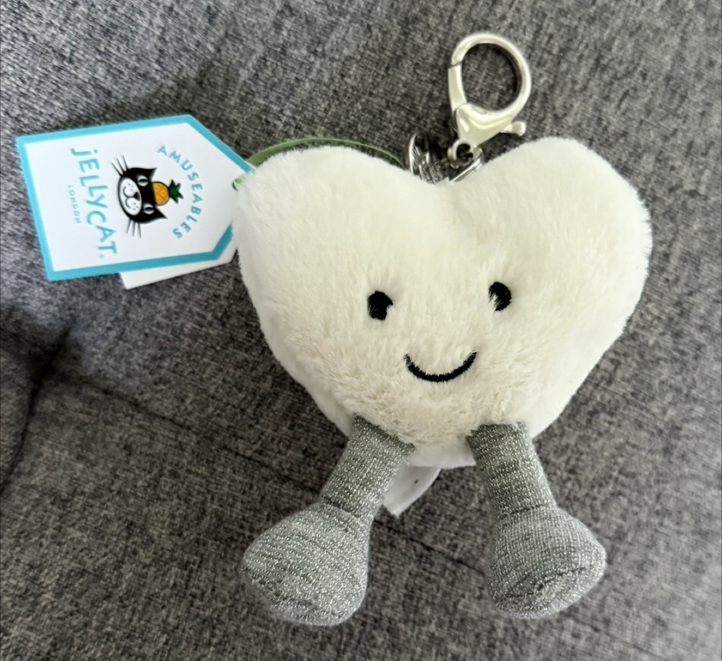 Wherever you go, wear your heart on your bag! The Amuseables Cream Heart Bag Charm is a gorgeous pop of soft cream with silver glittery cord boots. With a silver claw clip and Jellycat tag, this bright-eyed pal suits any purse or backpack. A little love goes a long, long way.