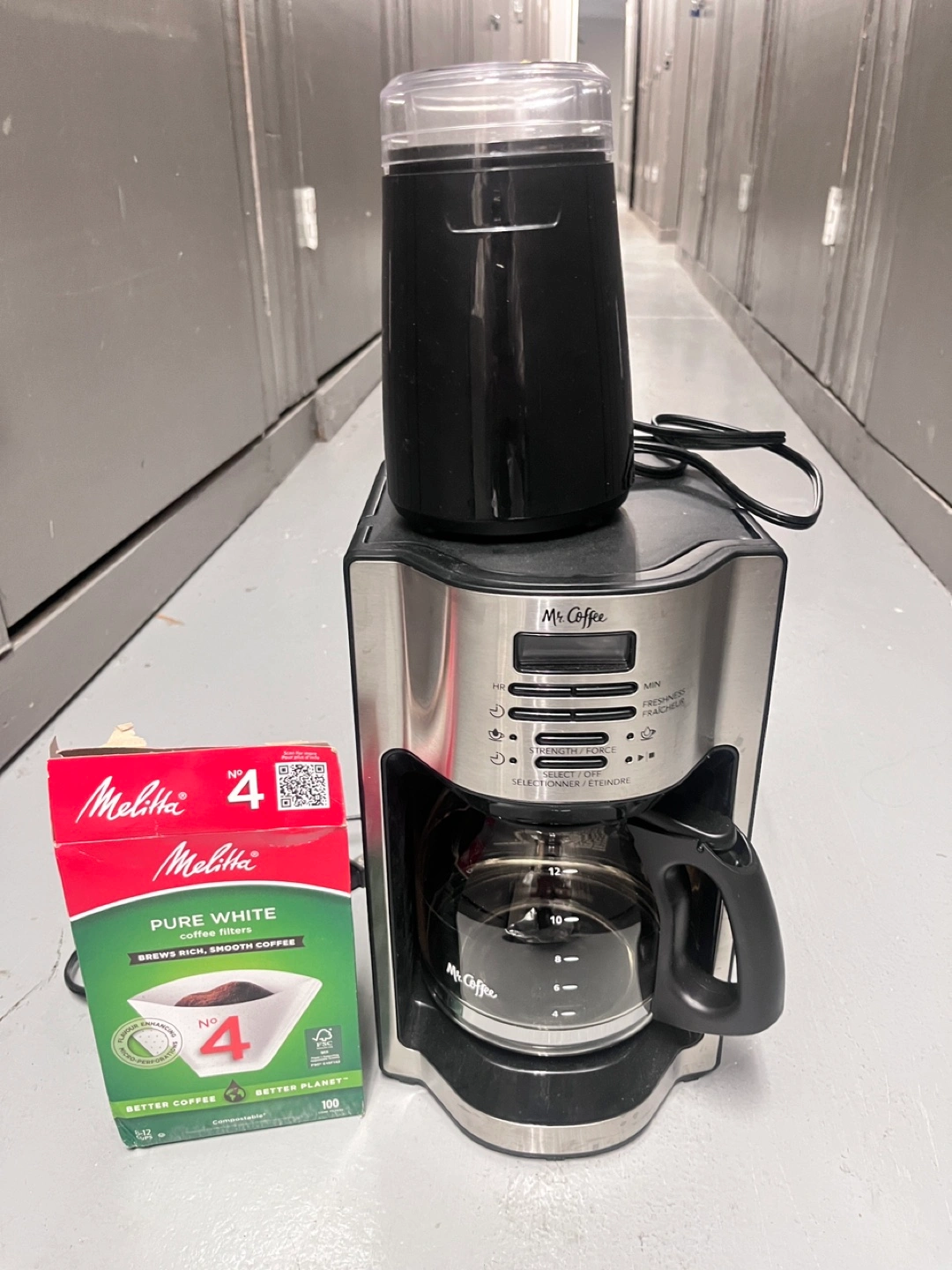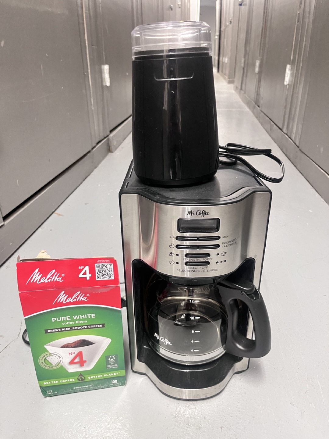 Selling a Mr. Coffee maker, perfect for brewing rich, smooth coffee right at home! Also included is a grinder and a box of Melitta Pure White coffee filters. The filters are size No. 4 and are compostable.