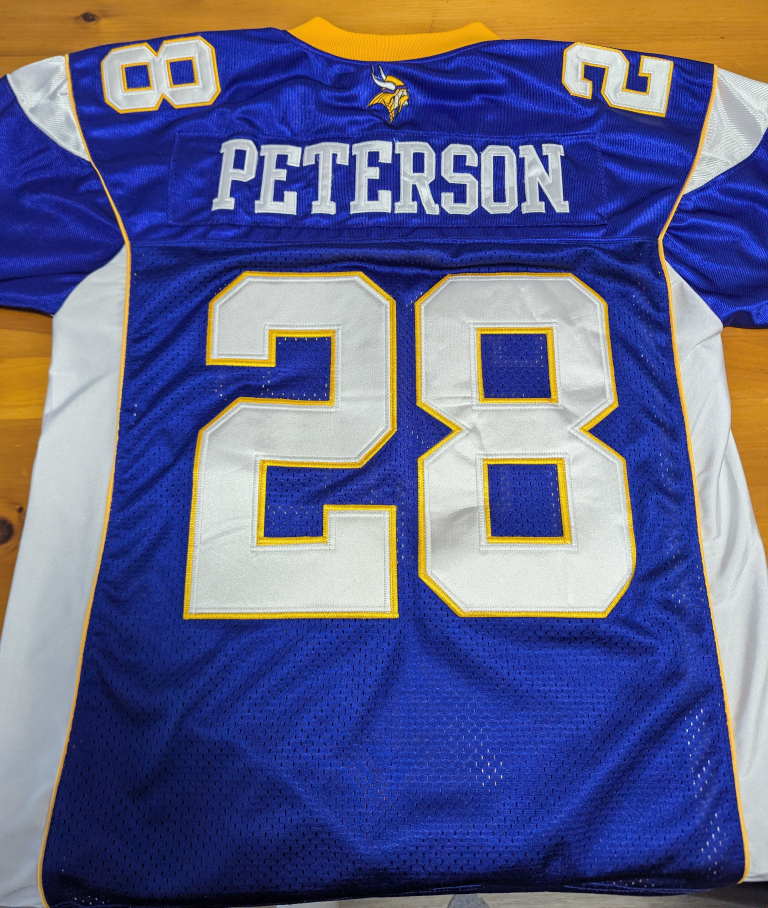 Selling a Non-Official Replica Vikings Peterson jersey. The jersey features the number 28 and the name PETERSON on the back. It's in great shape and ready for a new fan!
